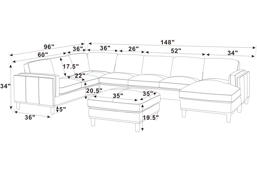 3, The high-leg design and slim profile create an "Airy" feel, making this large-scale sectional feel light and sophisticated in any modern floor plan.