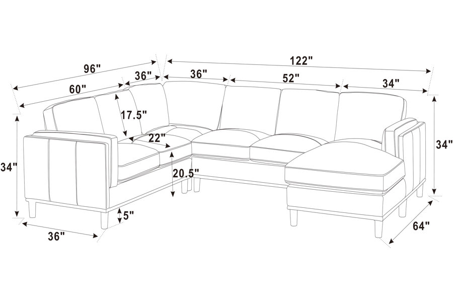 3, The high-leg design and slim profile create an "Airy" feel, making this large-scale sectional feel light and sophisticated in any modern floor plan.