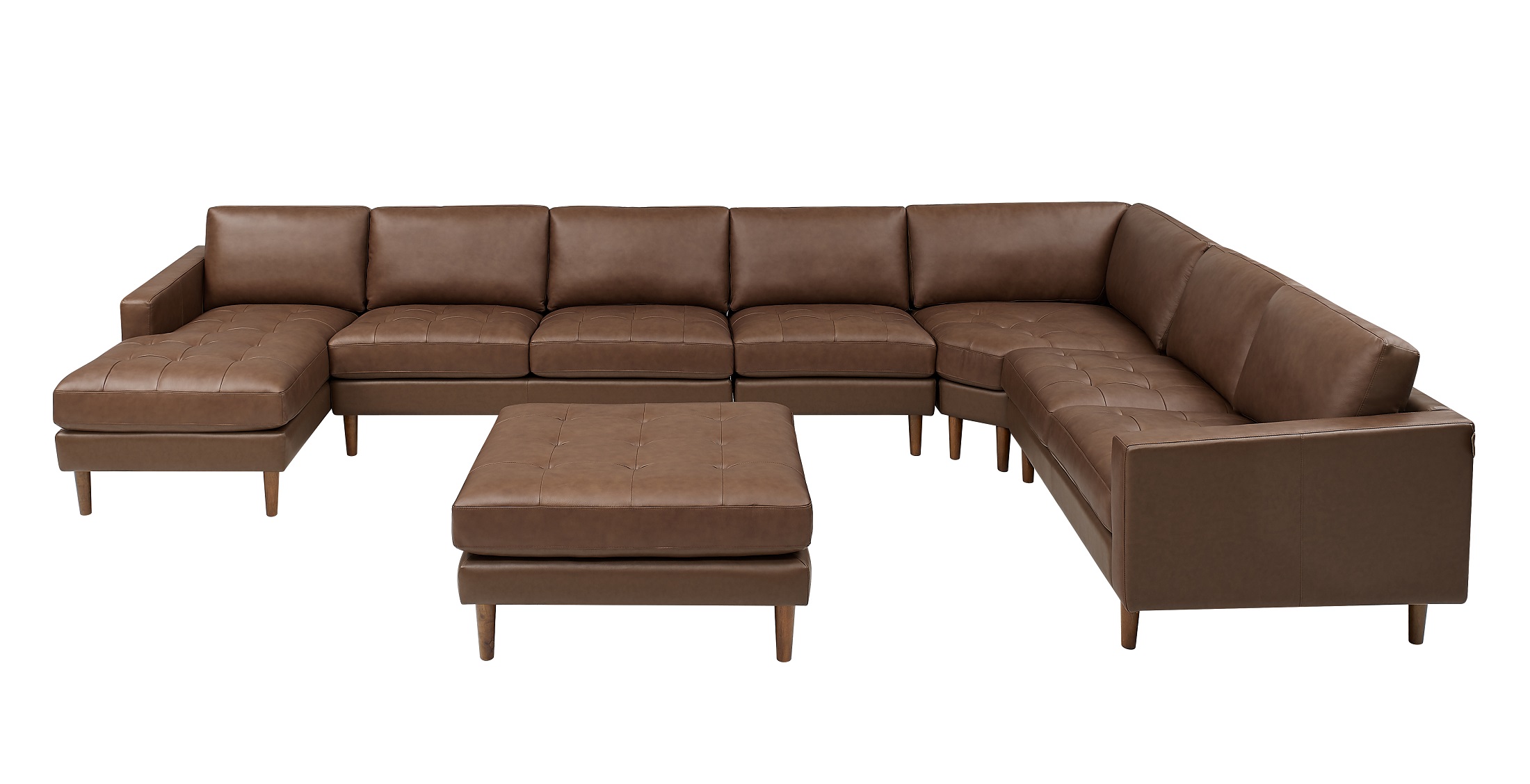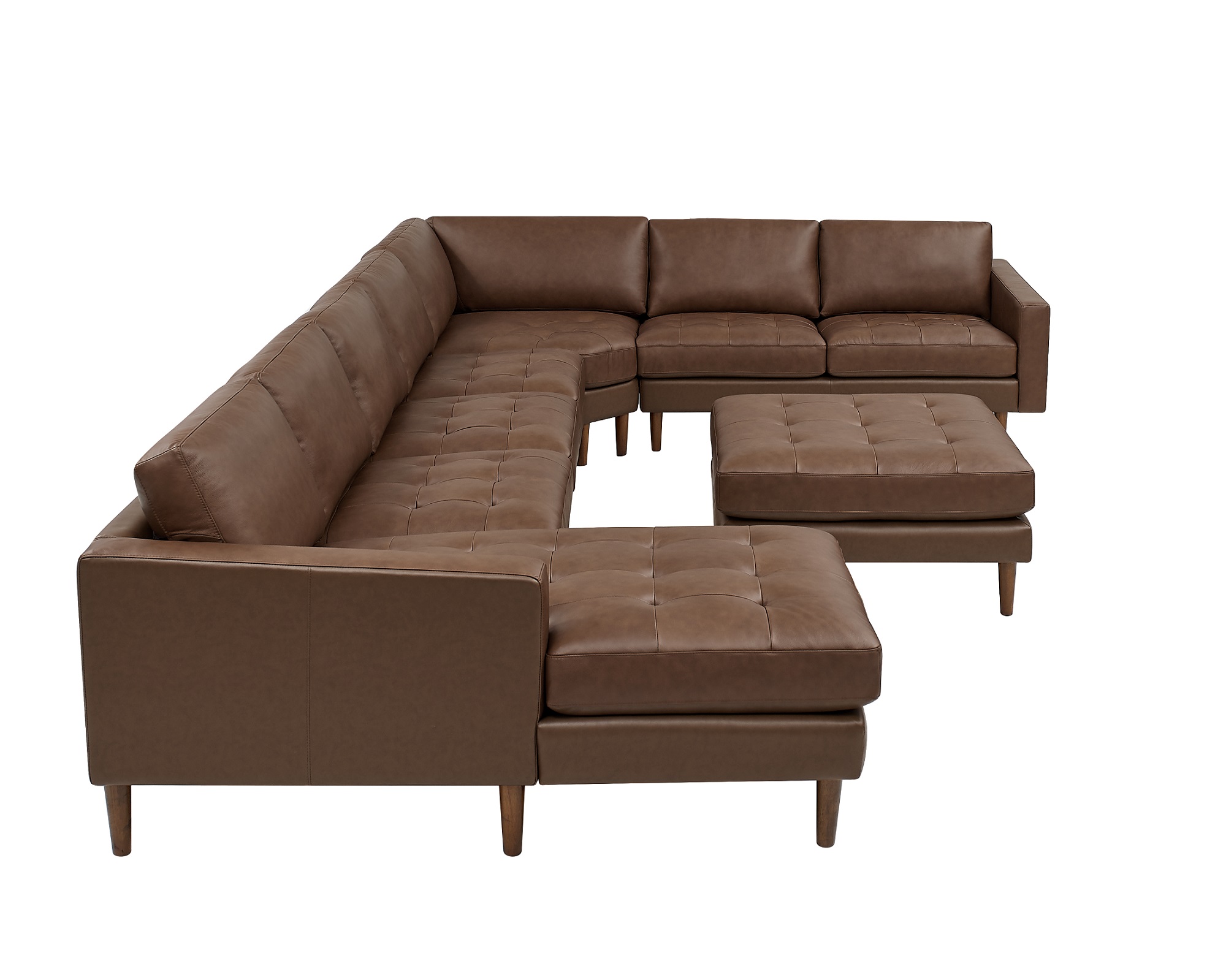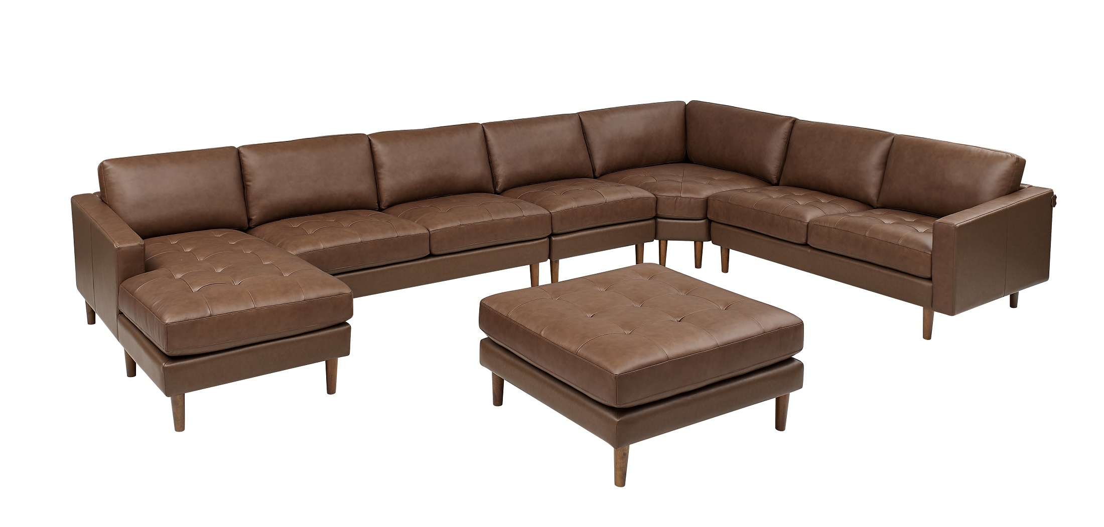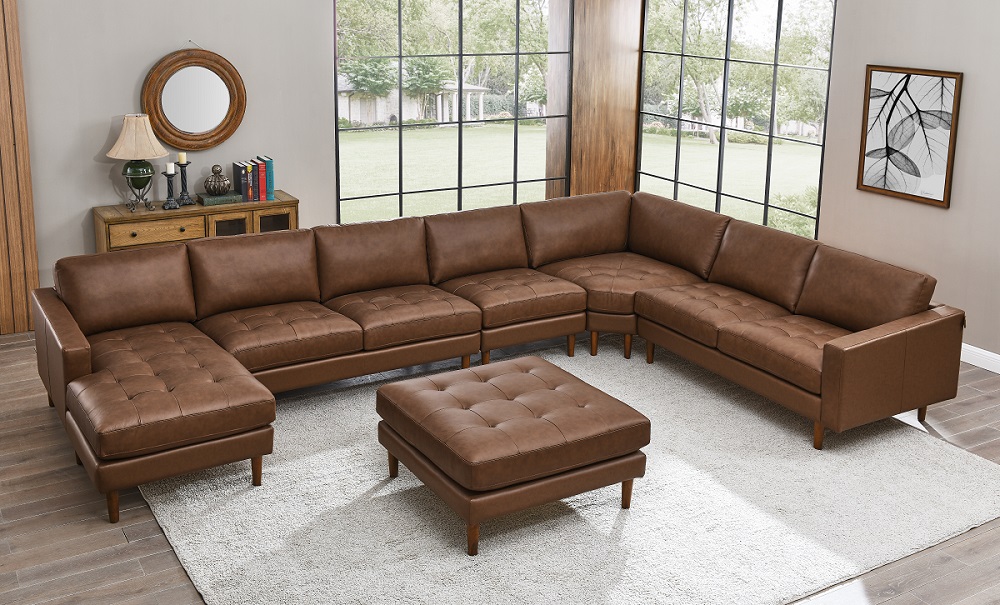1, The 7957X series, a modular masterpiece that balances the airy elegance of Mid-Century design with the prestigious texture of hand-tufted leather.