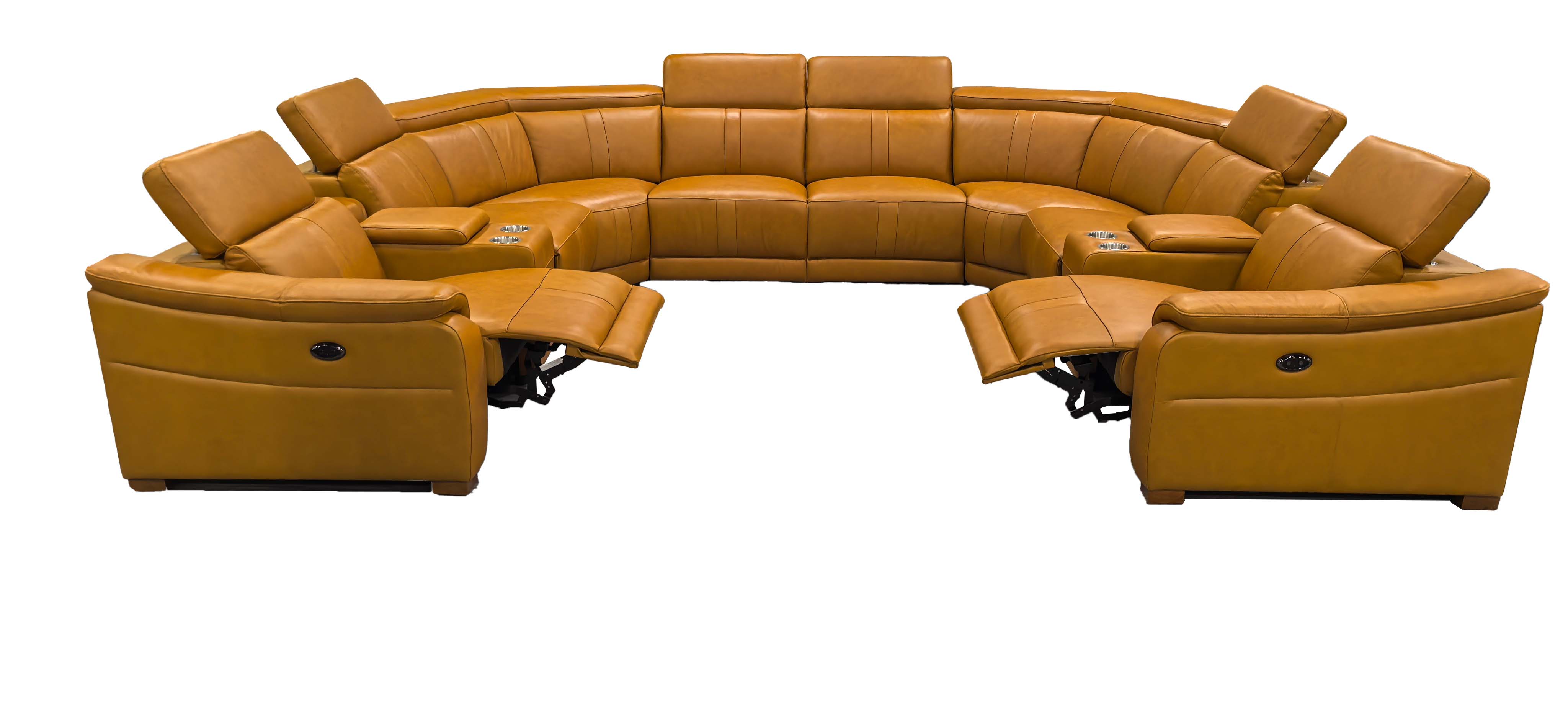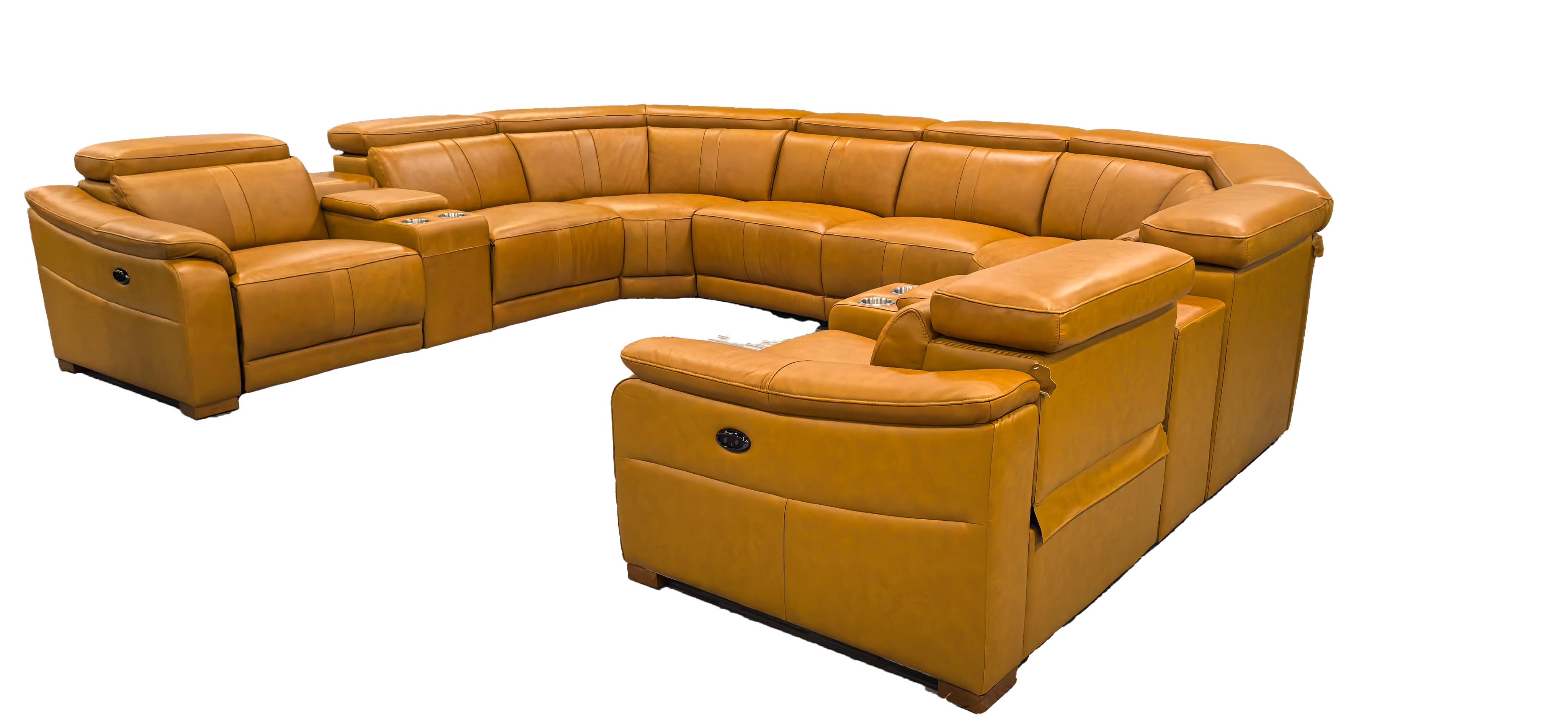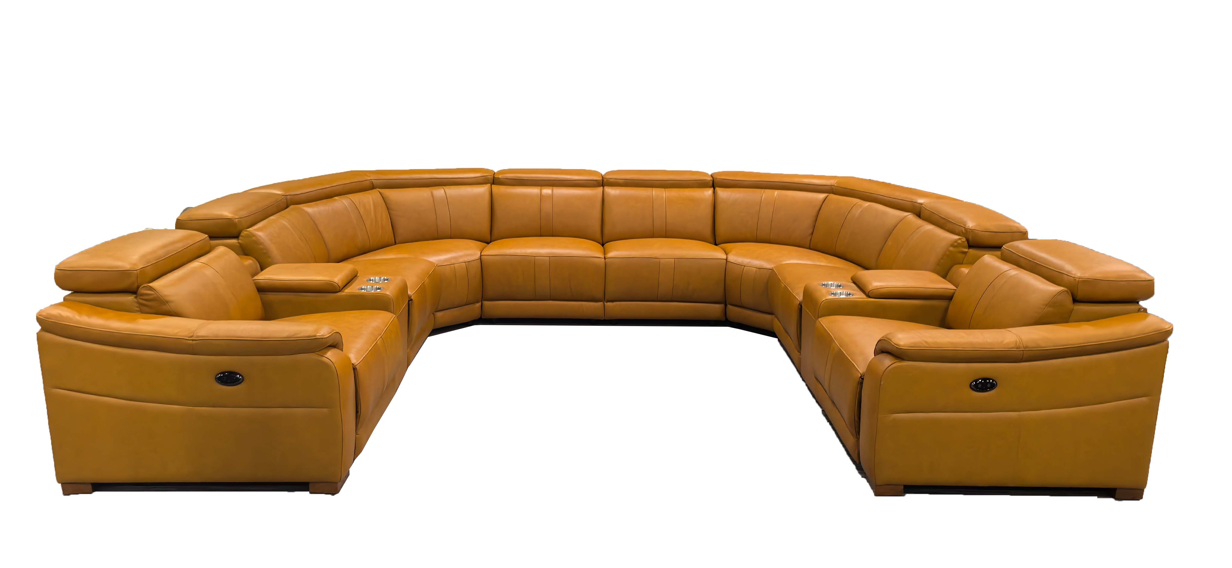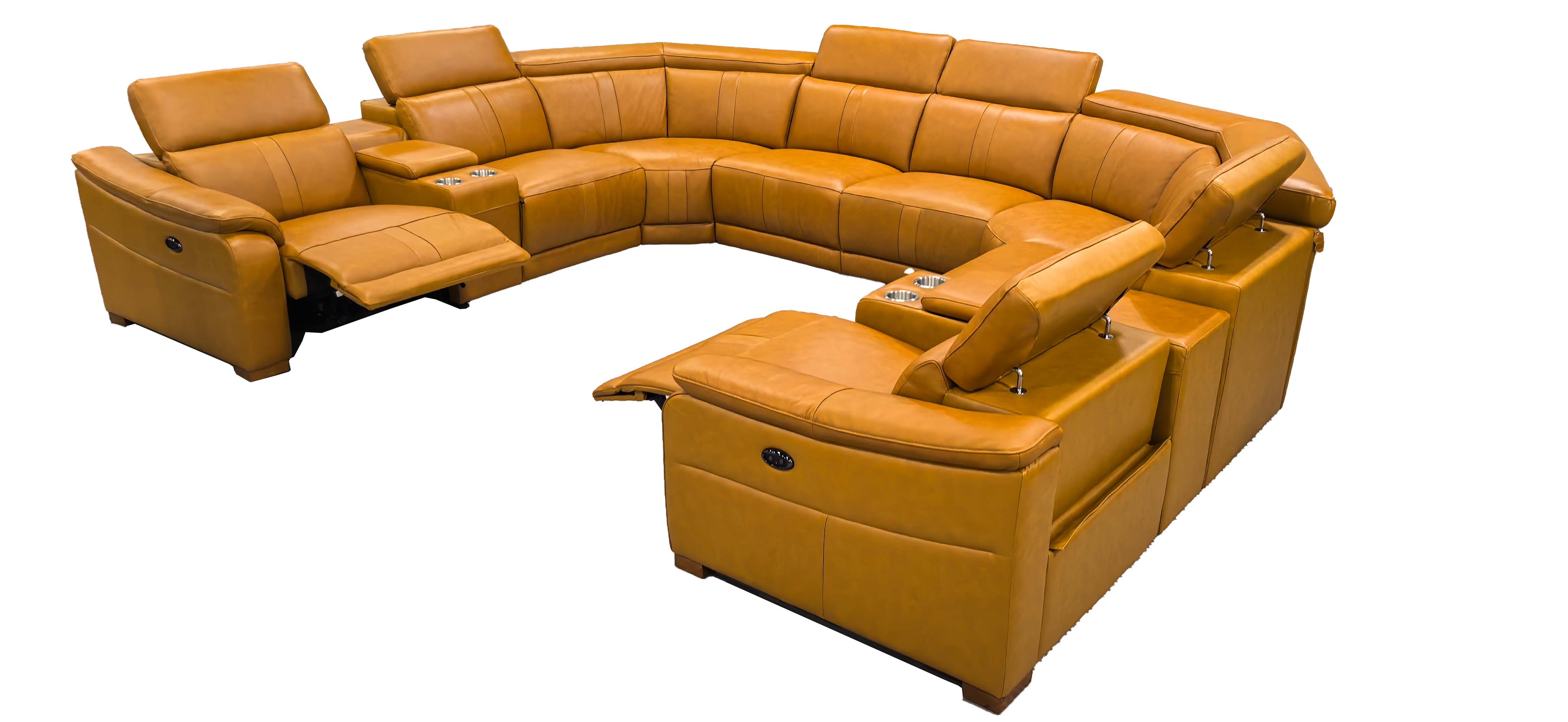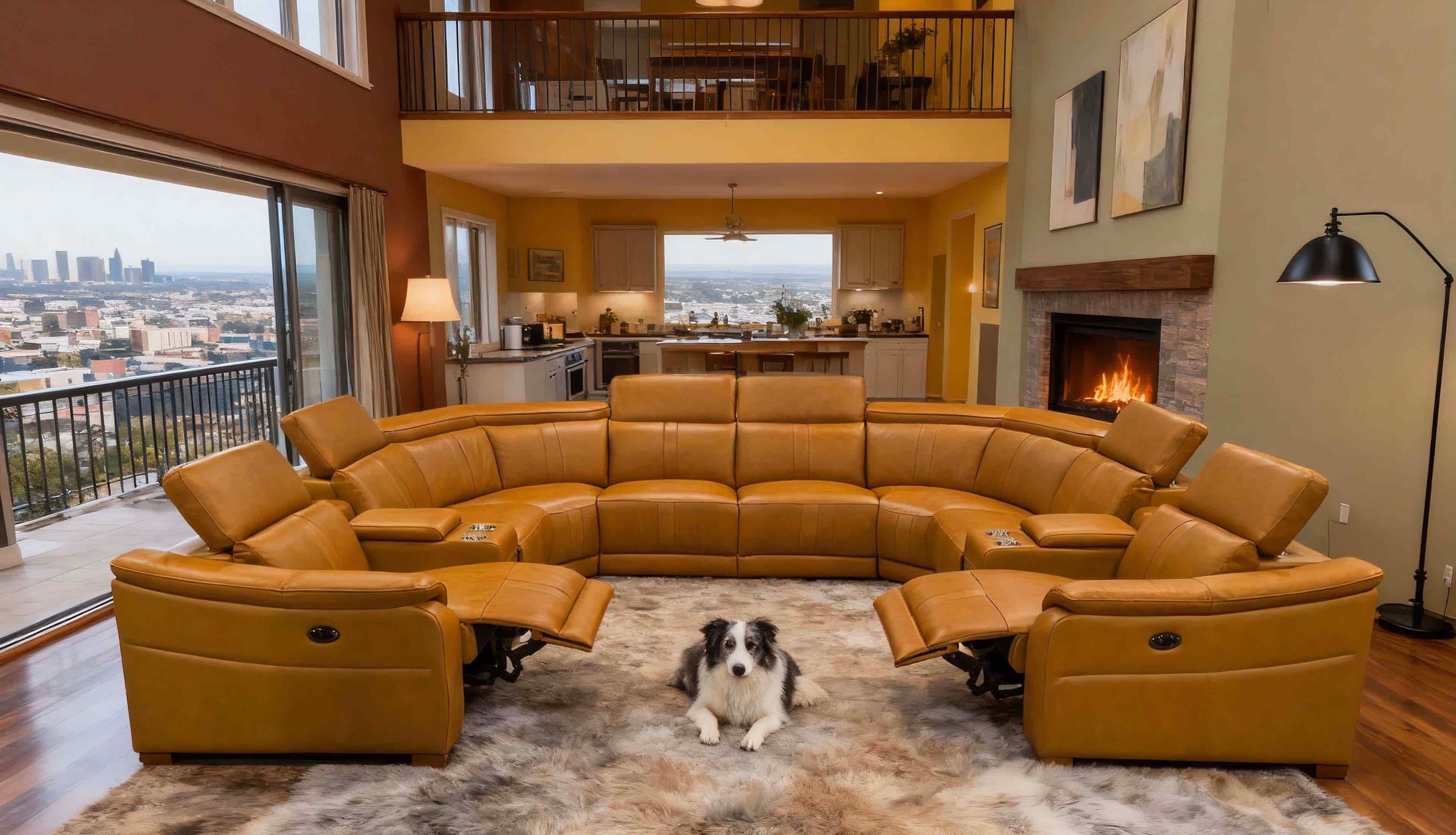 5, With its expansive U-shaped silhouette and warm amber tones, this centerpiece seamlessly anchors grand living spaces with effortless elegance.