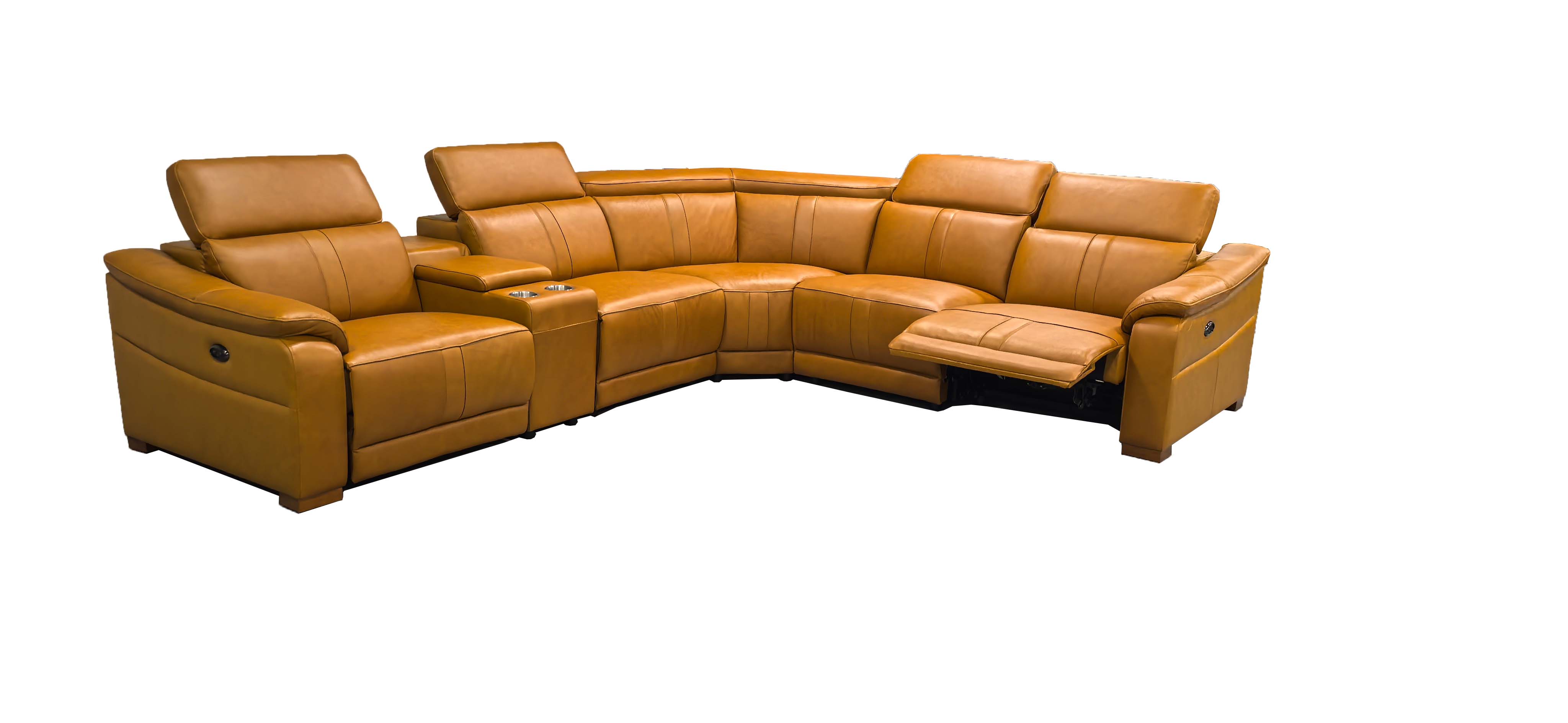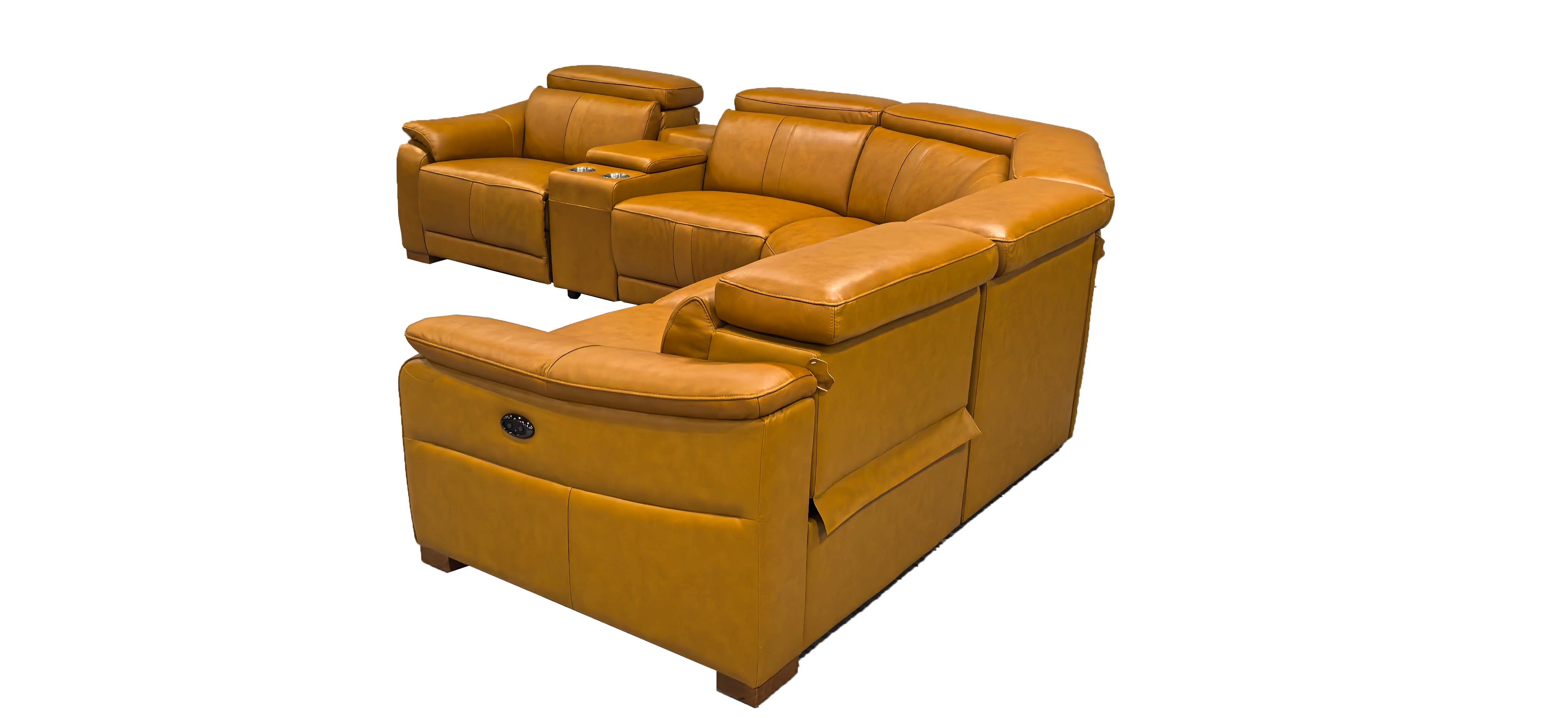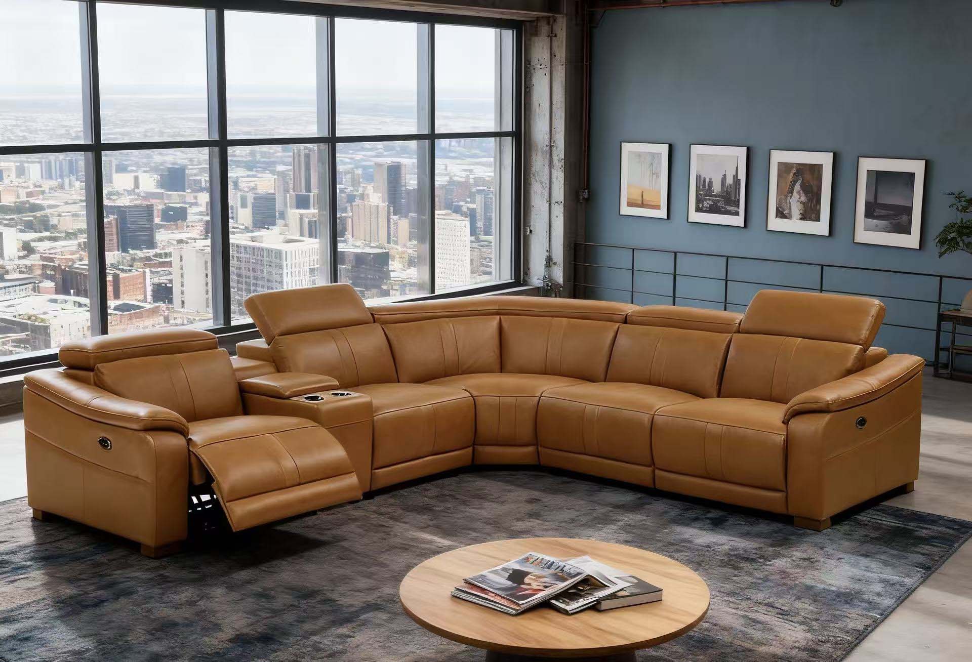 5, With its expansive L-shaped silhouette and warm amber tones, this centerpiece seamlessly anchors grand living spaces with effortless elegance.