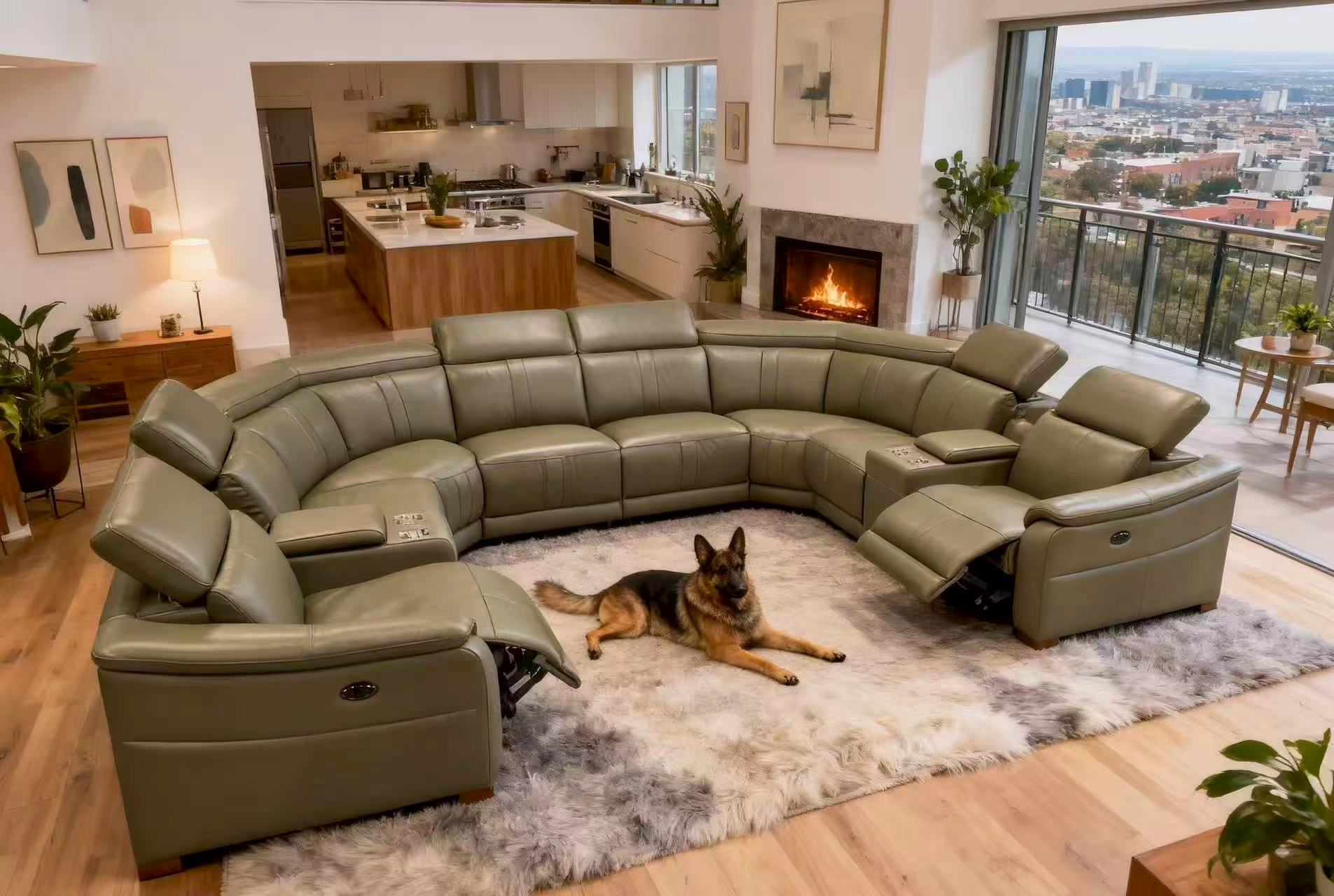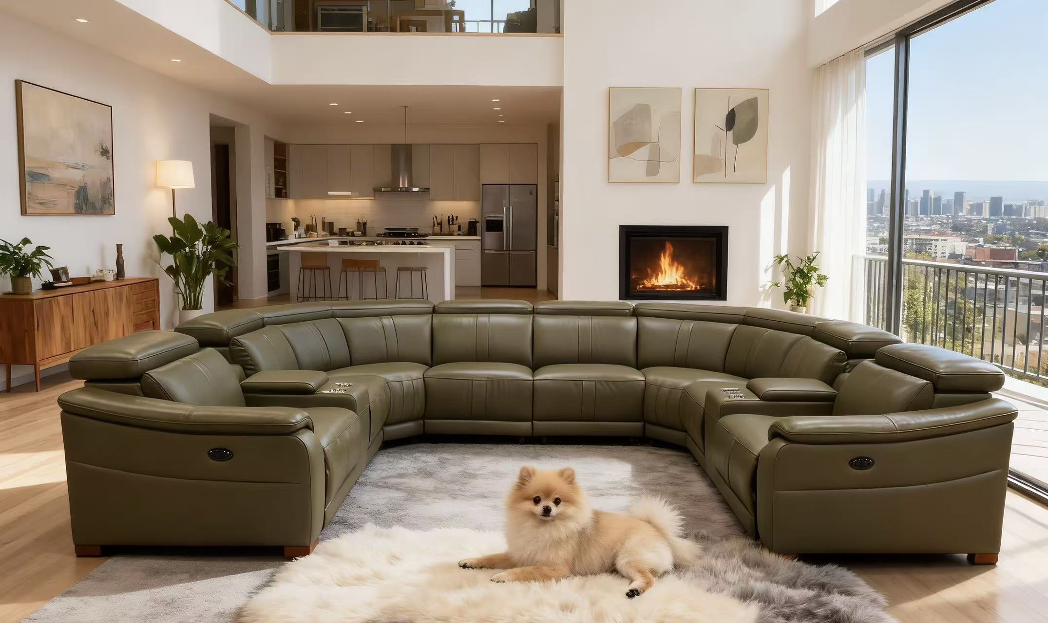 5, With its expansive U-shaped silhouette and warm amber tones, this centerpiece seamlessly anchors grand living spaces with effortless elegance.