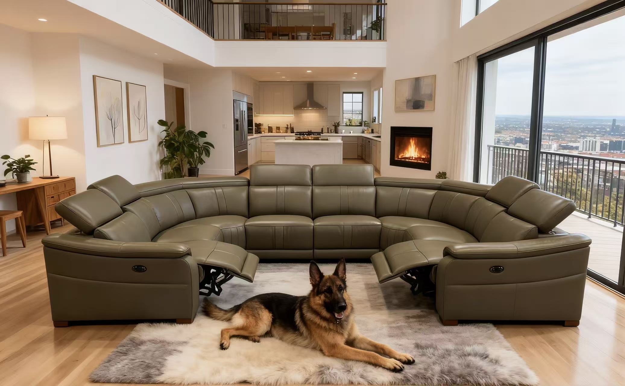 5, With its expansive U-shaped silhouette and warm amber tones, this centerpiece seamlessly anchors grand living spaces with effortless elegance.