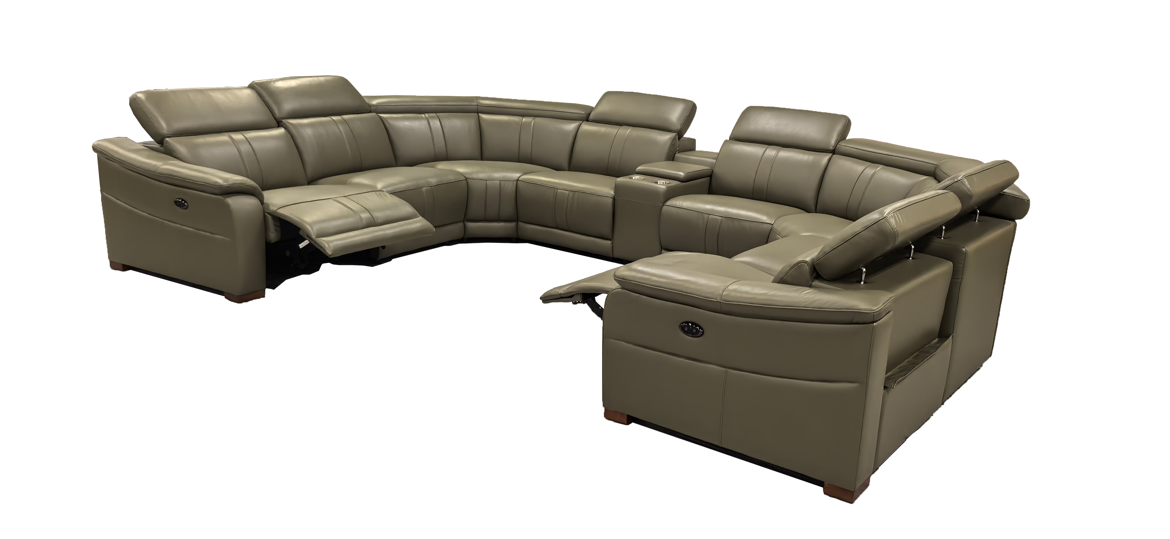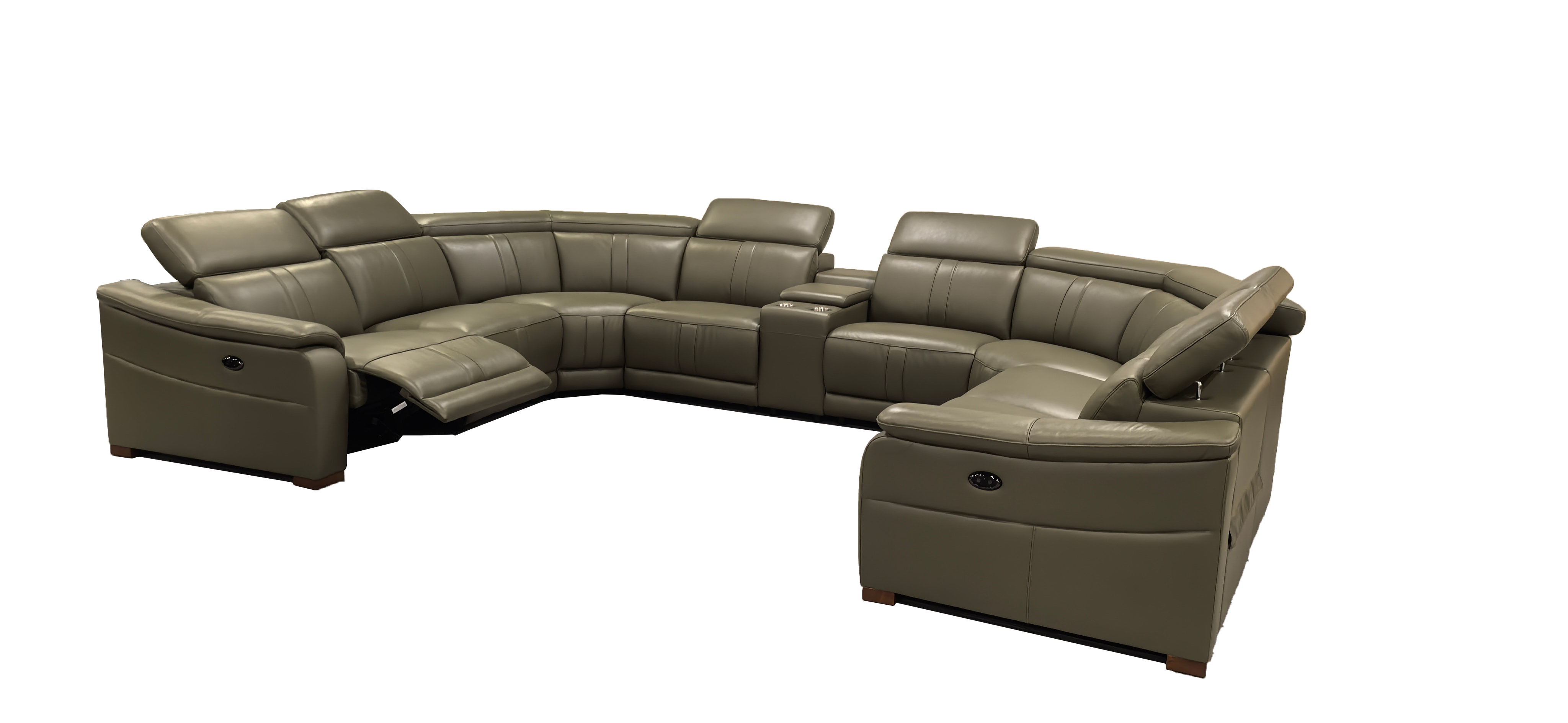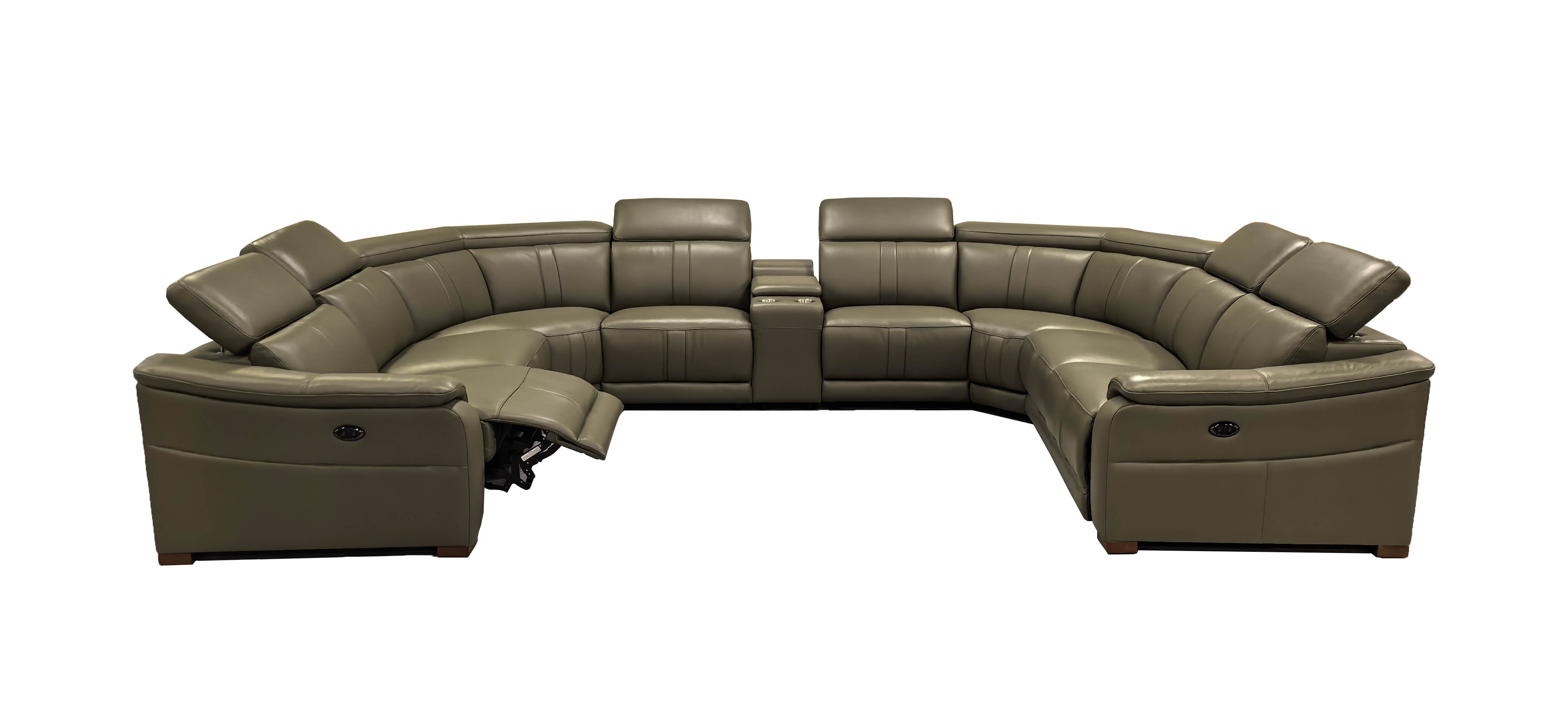 1, The -9 configuration masterfully integrates a multi-functional storage console into its grand U-shape, blending massive seating with high-end convenience.