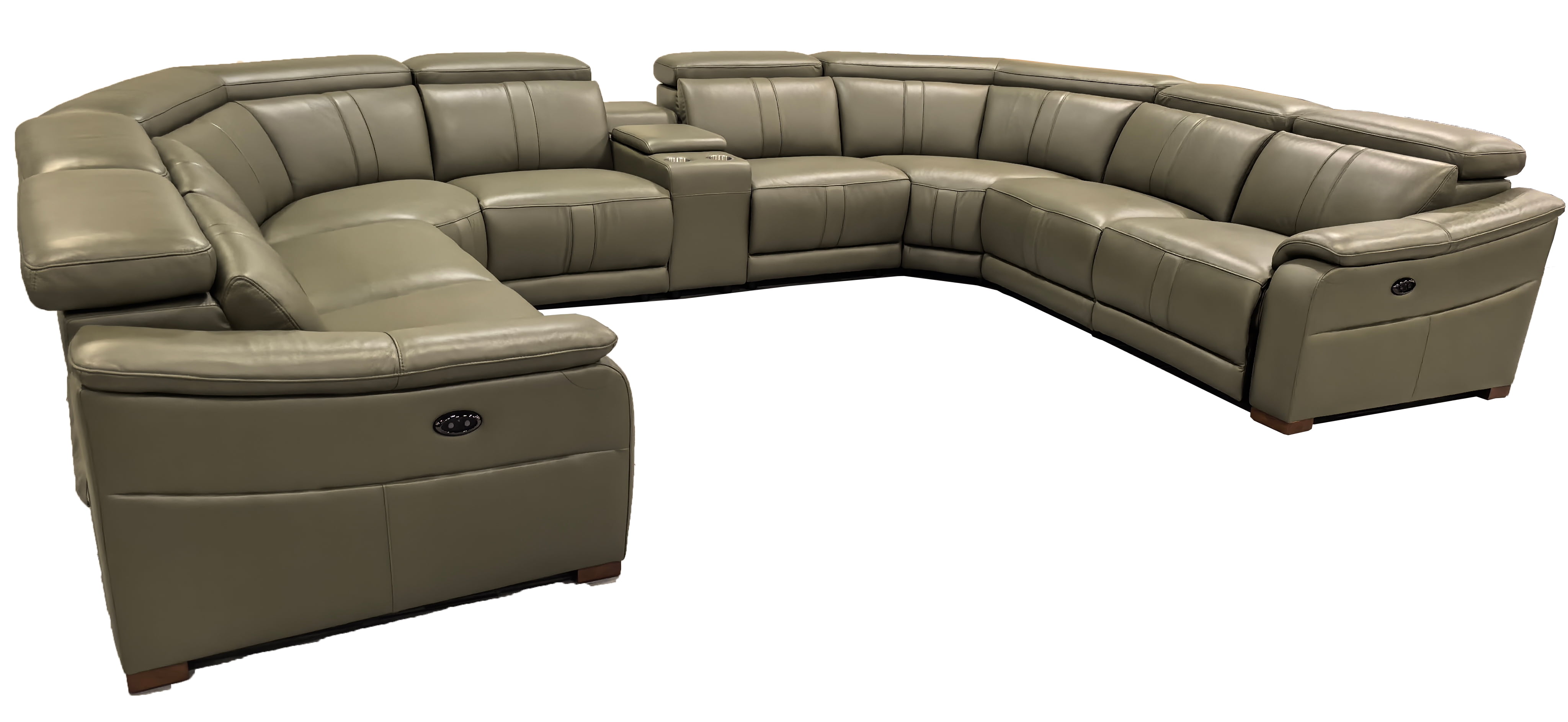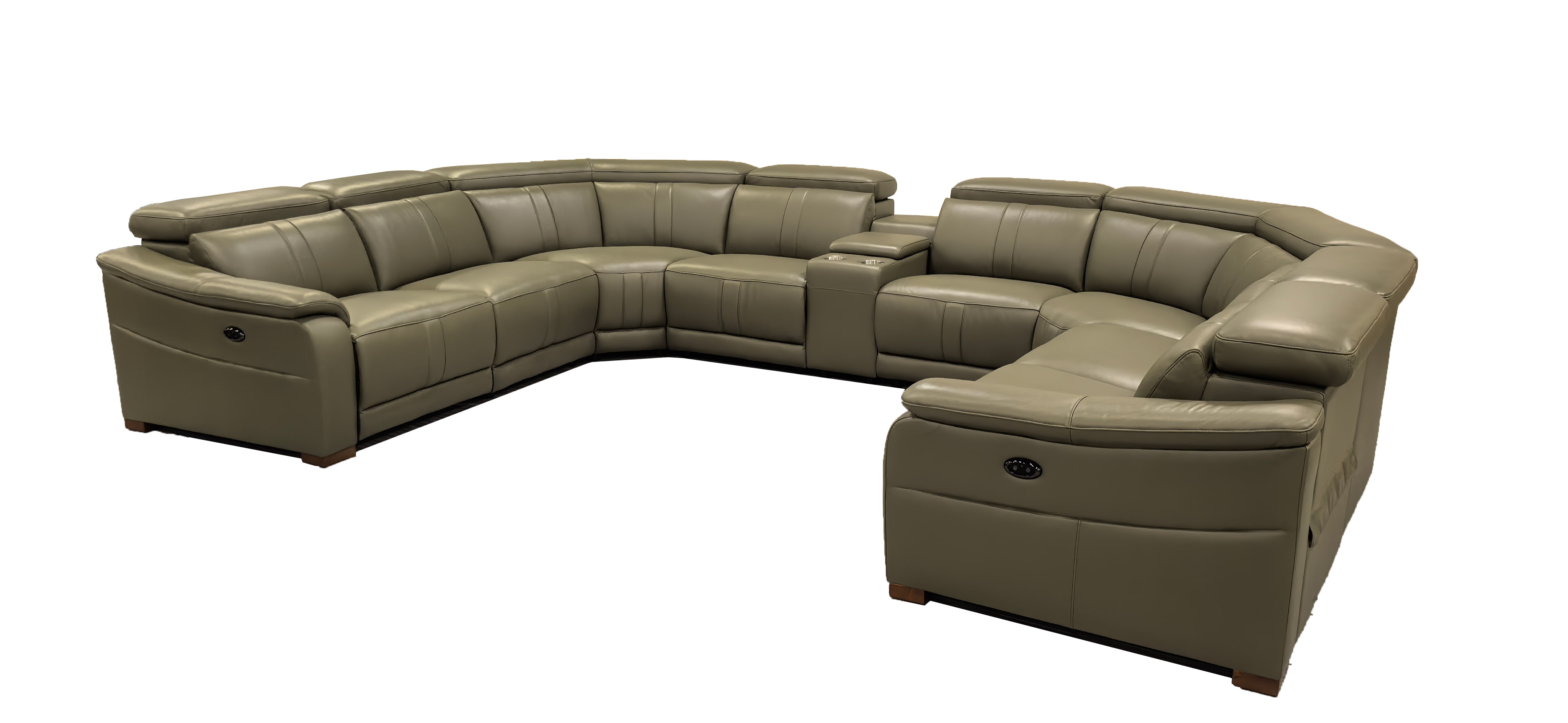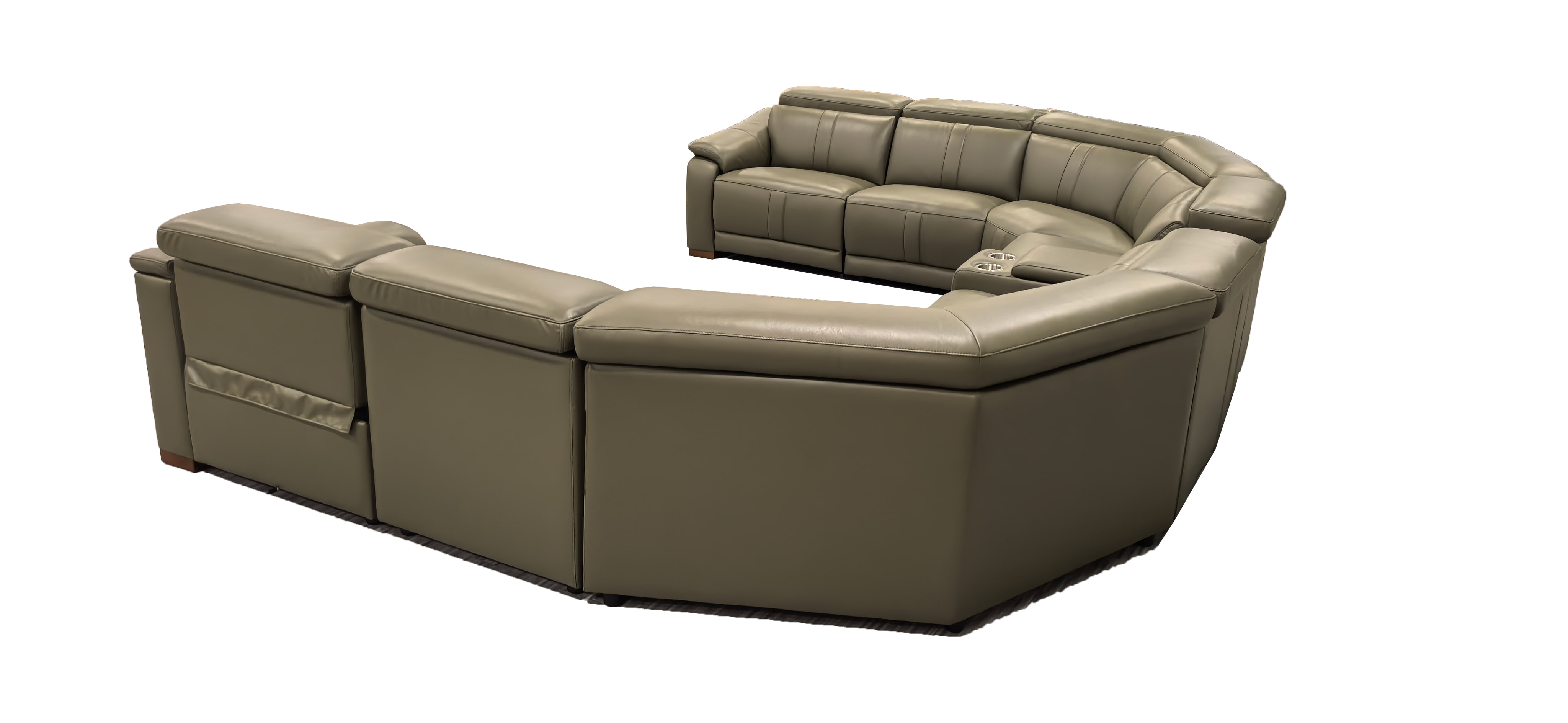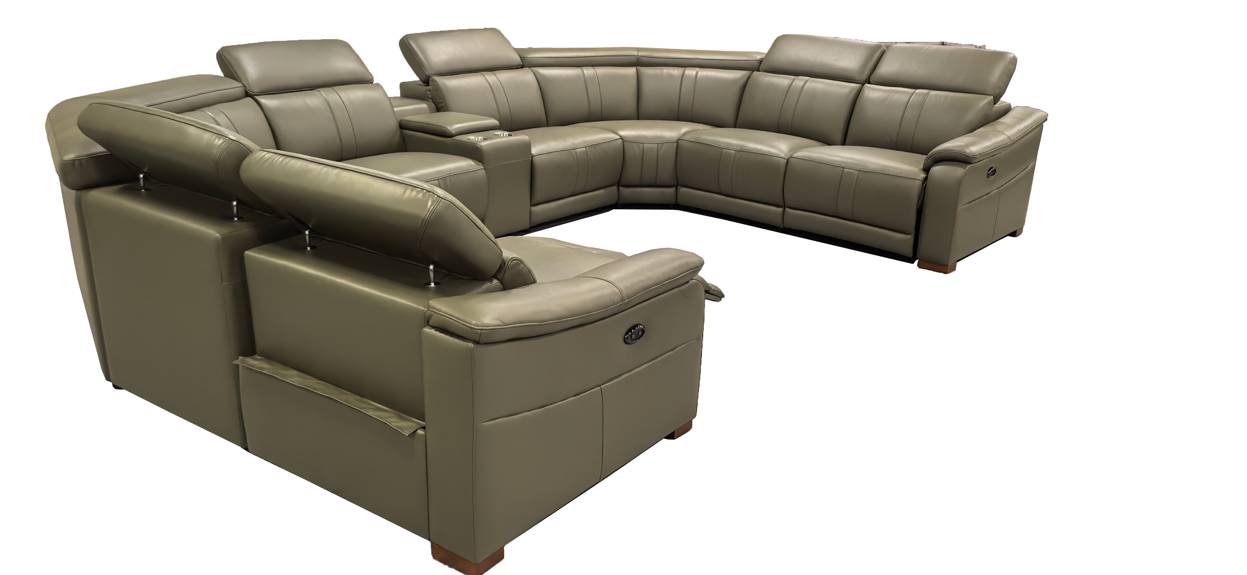 1, The -9 configuration masterfully integrates a multi-functional storage console into its grand U-shape, blending massive seating with high-end convenience.