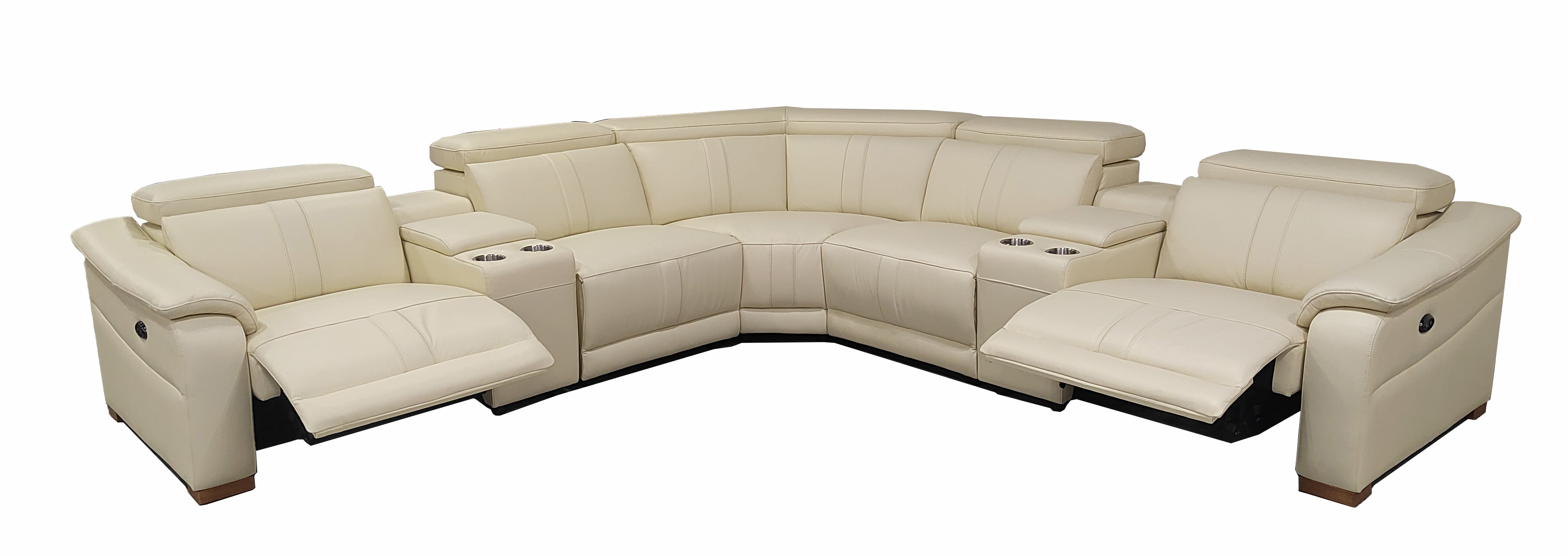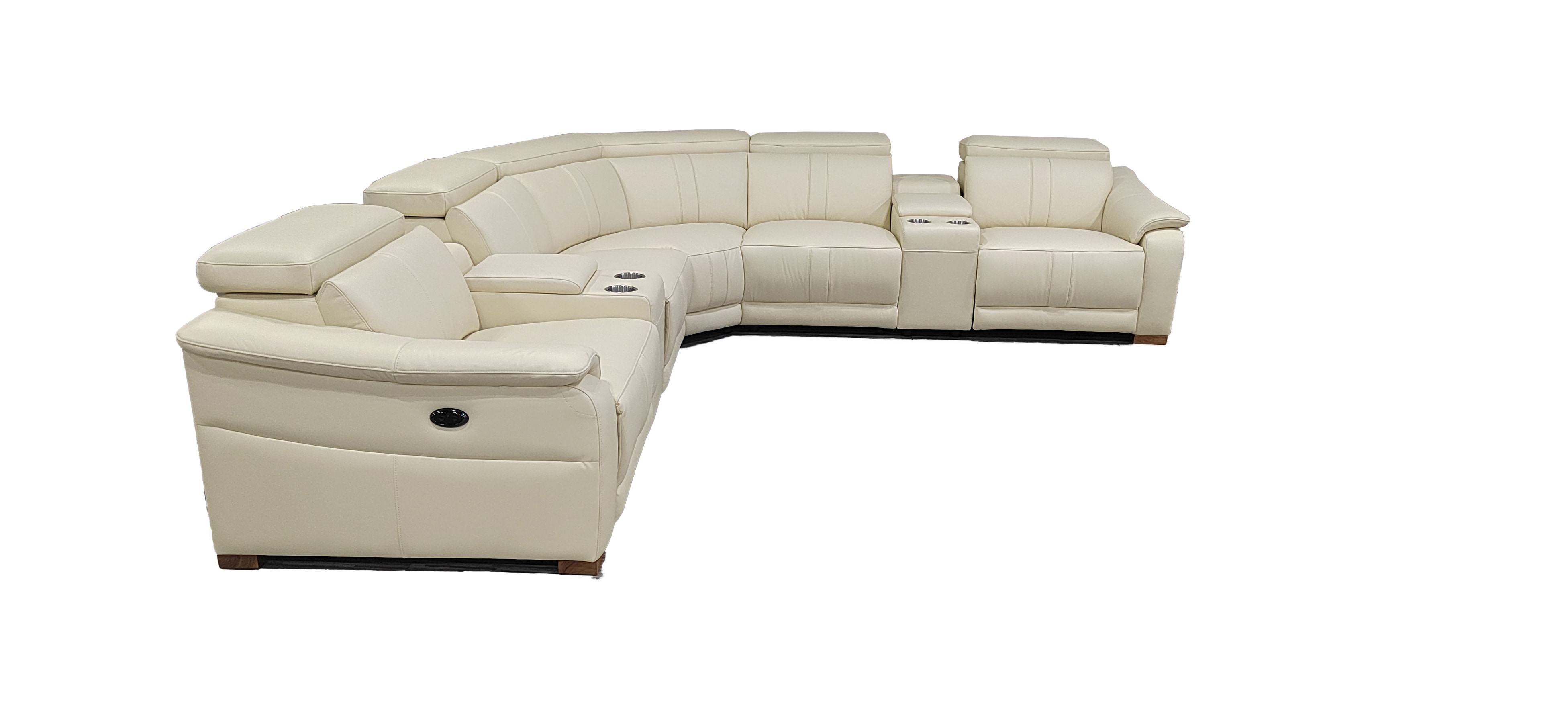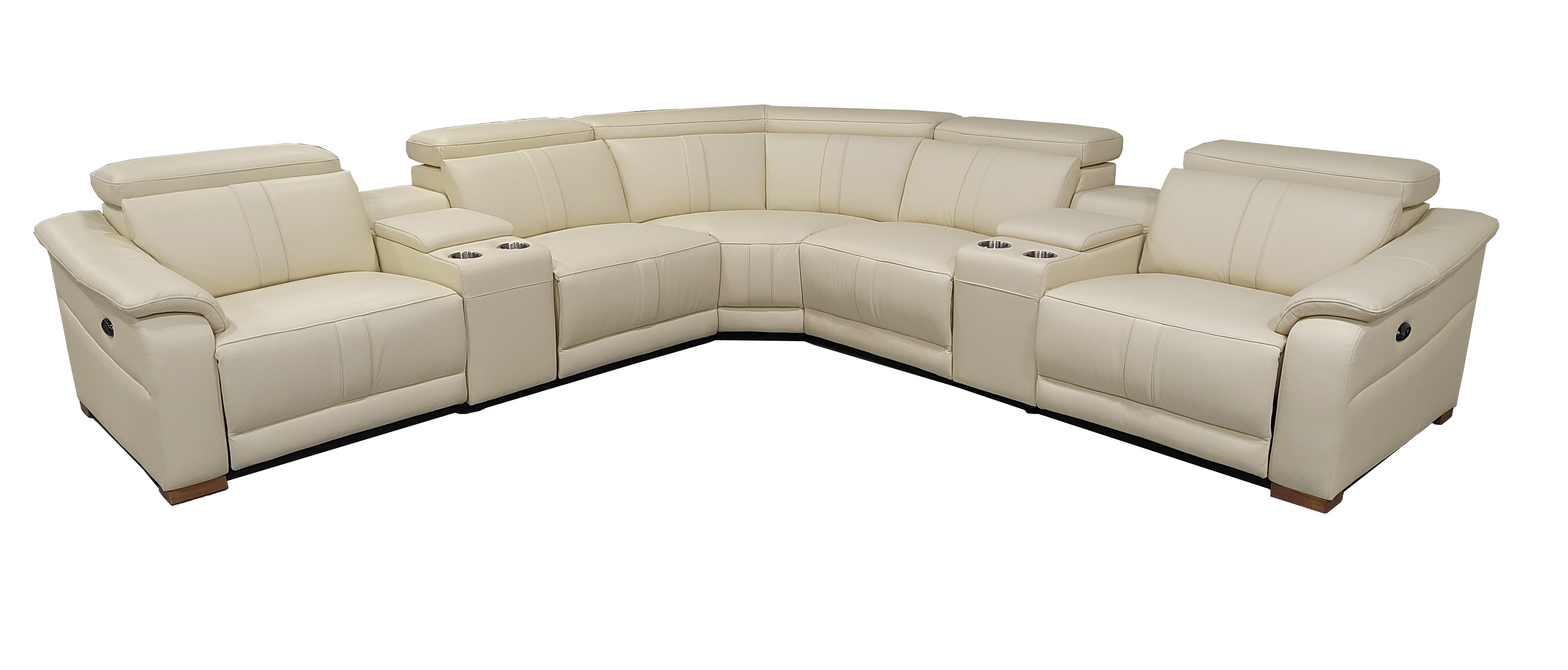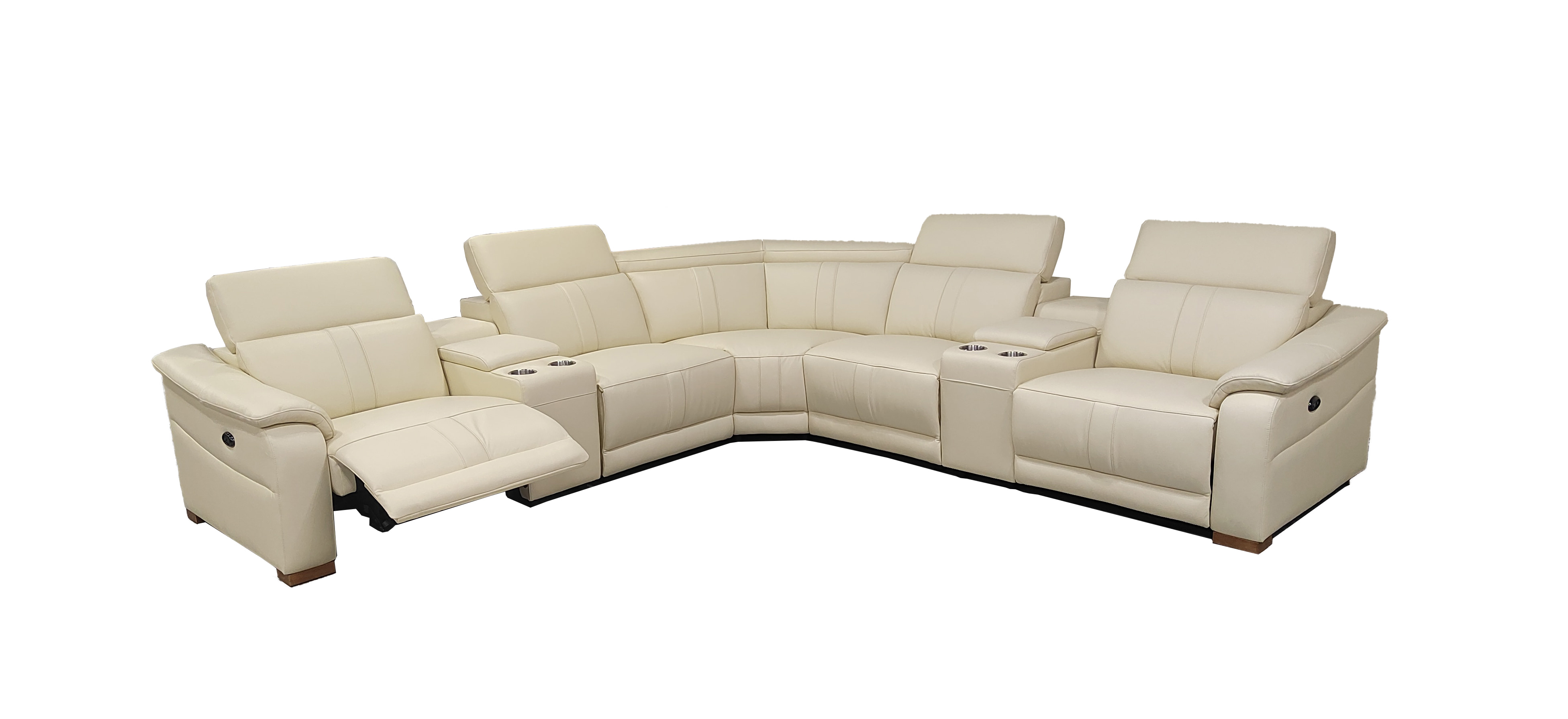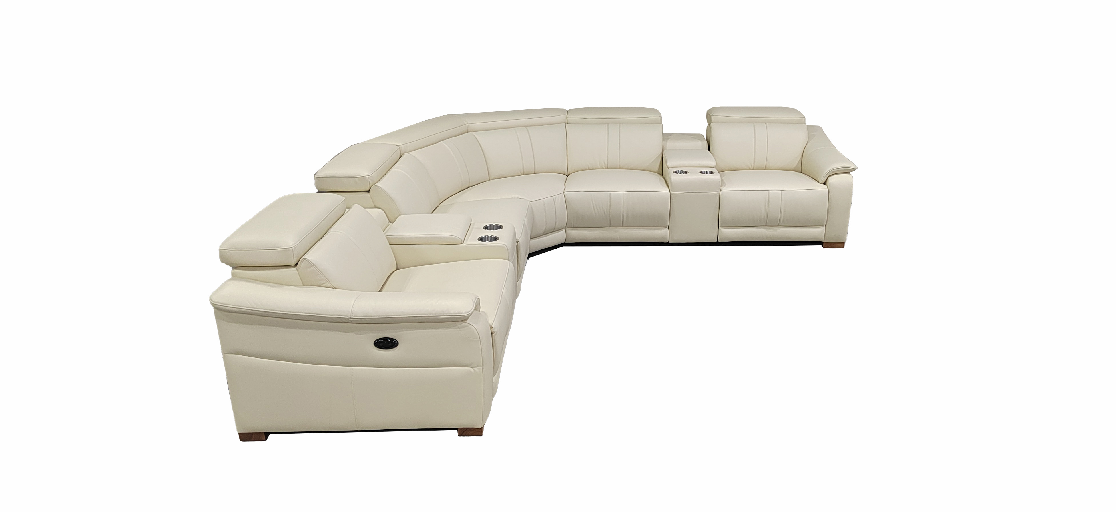 1, This premium 7-piece sectional features a unique dual-console configuration, offering double the storage and four cupholders for the ultimate organized living space.