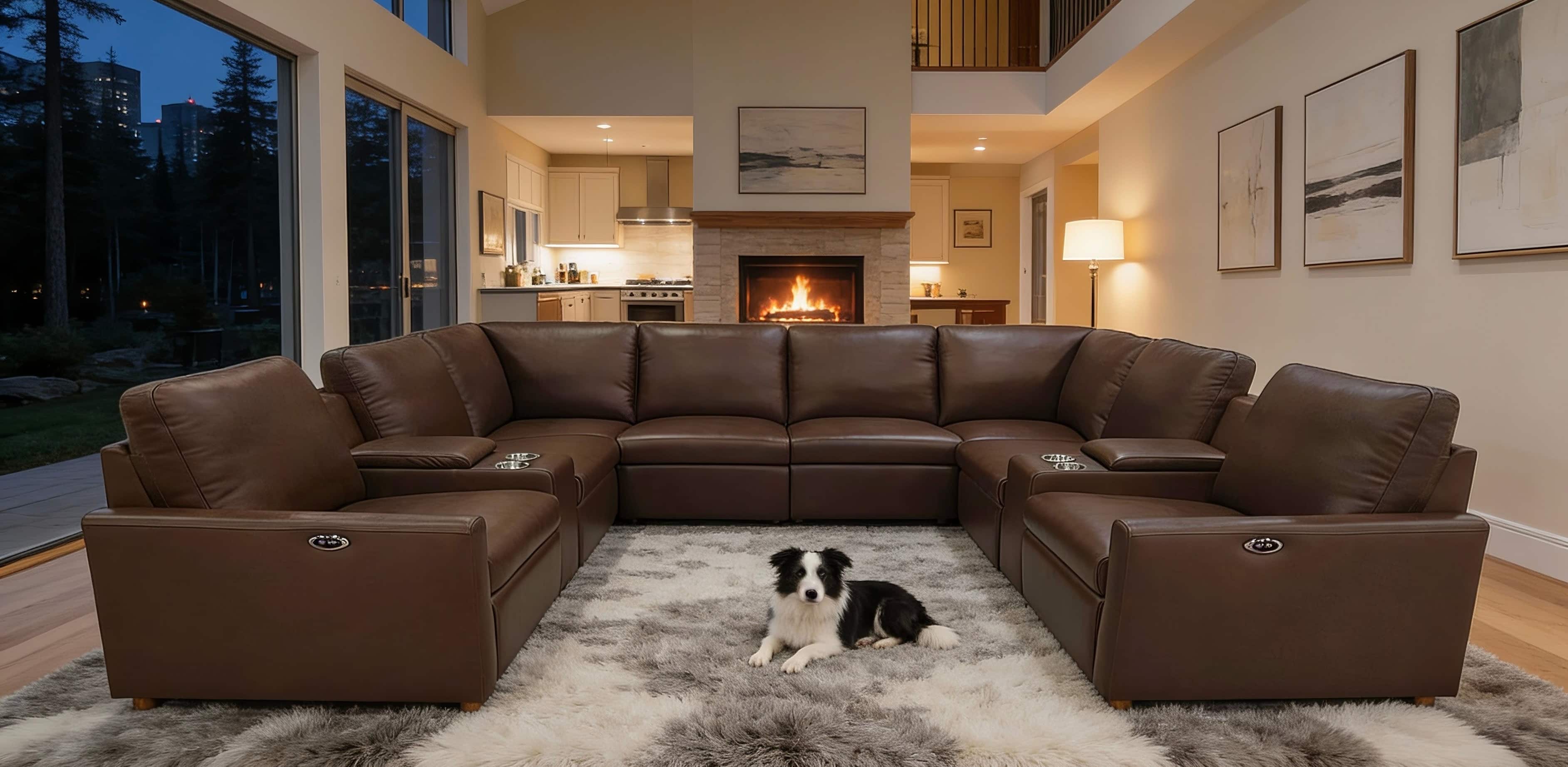 • 2, Engineered with high-resilience foam, this executive-style sectional provides unparalleled ergonomic support for the ultimate in grand-scale hosting.