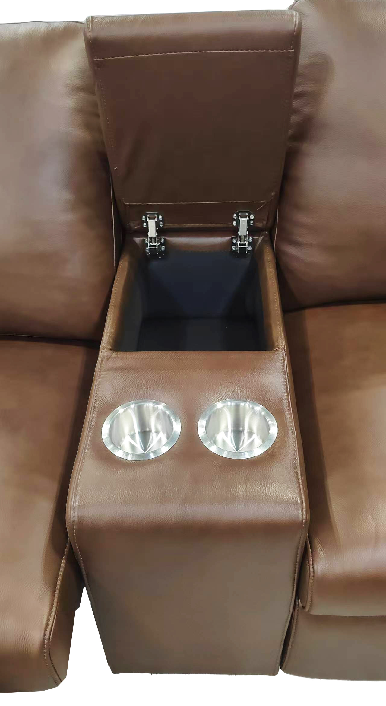 Optioned Storage Console: Deep storage compartment and built-in cupholders for ultimate theater-style convenience.
