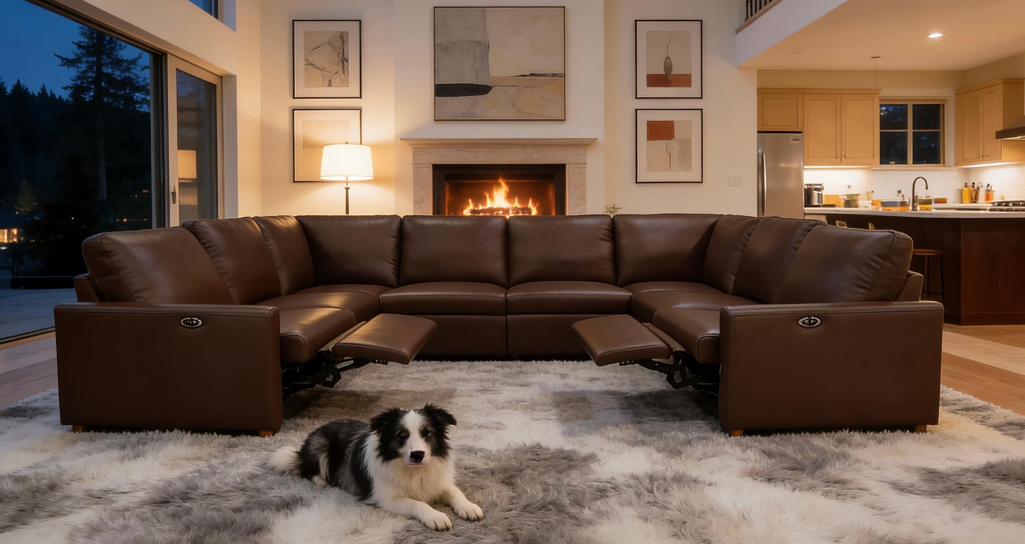 • 2, Every contact surface is upholstered in premium top-grain leather with a precision leather-matched finish elsewhere, delivering a buttery-smooth feel and exceptional durability for modern family living.