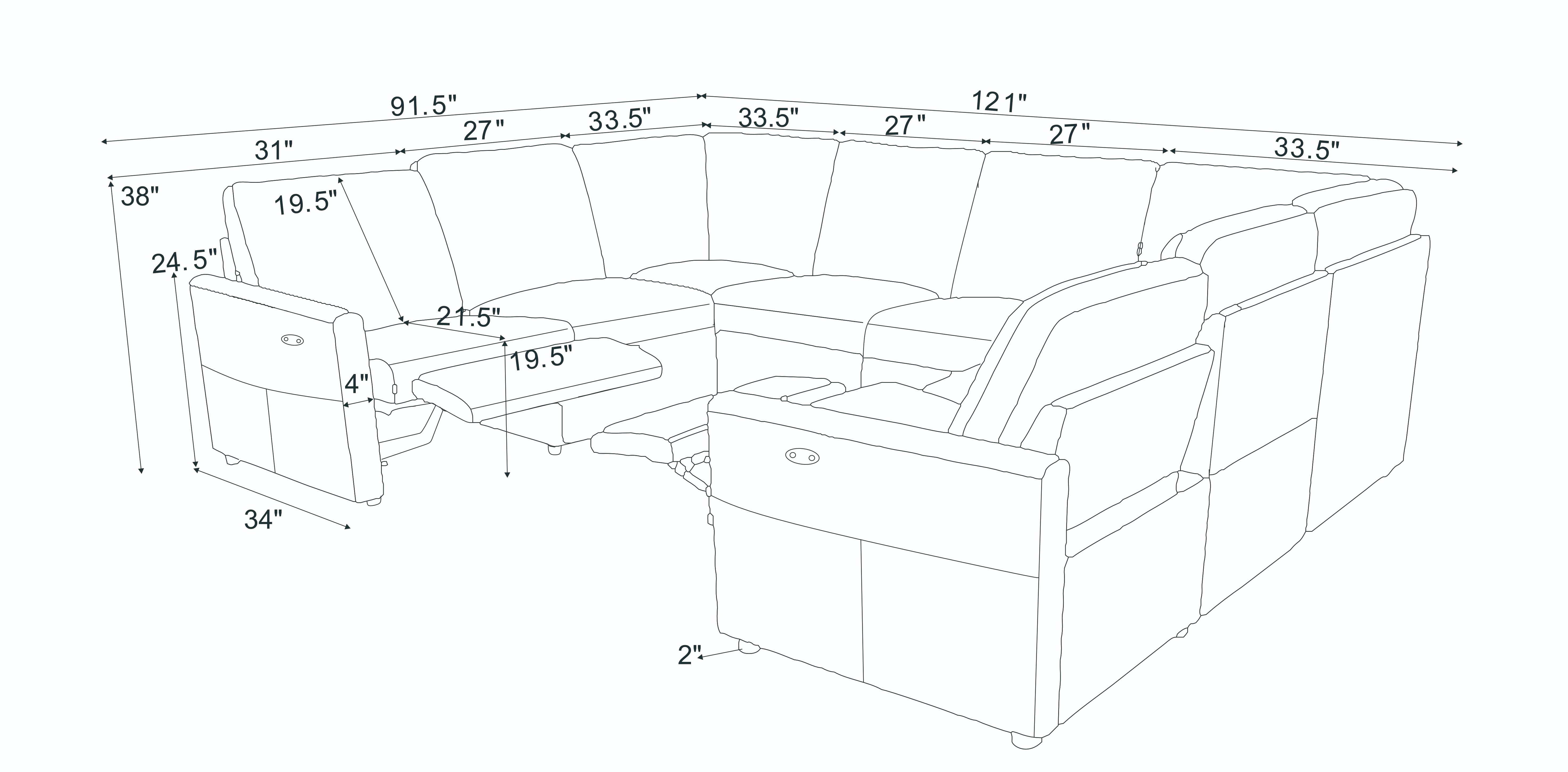 • 4, The dual power recliners integrated into the layout allow users to transition effortlessly to users' preferred lounging angle at the touch of a button.