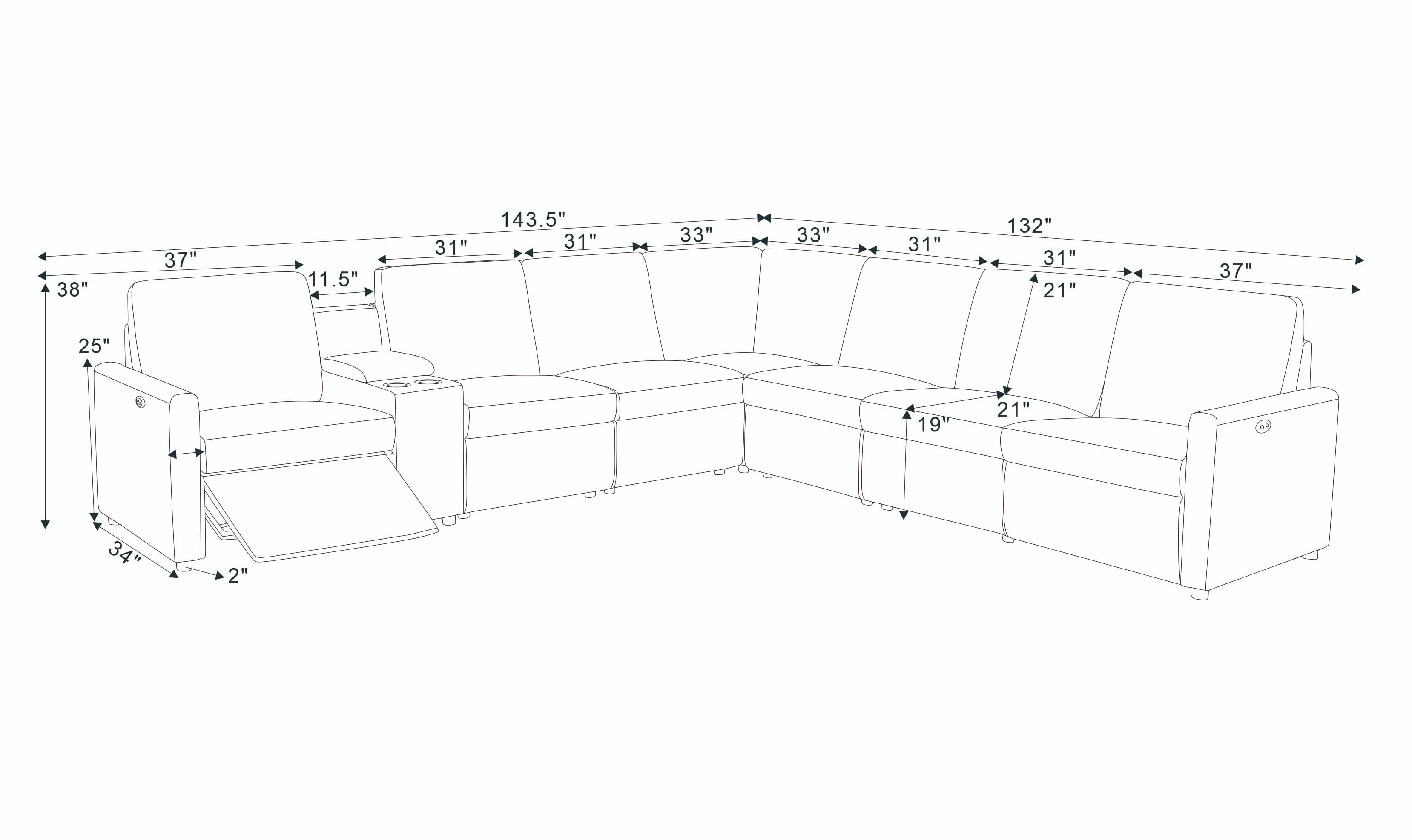 • 4, Integrated with power recliners, this configuration allows users to find ultimate relaxation angle at the touch of a button.