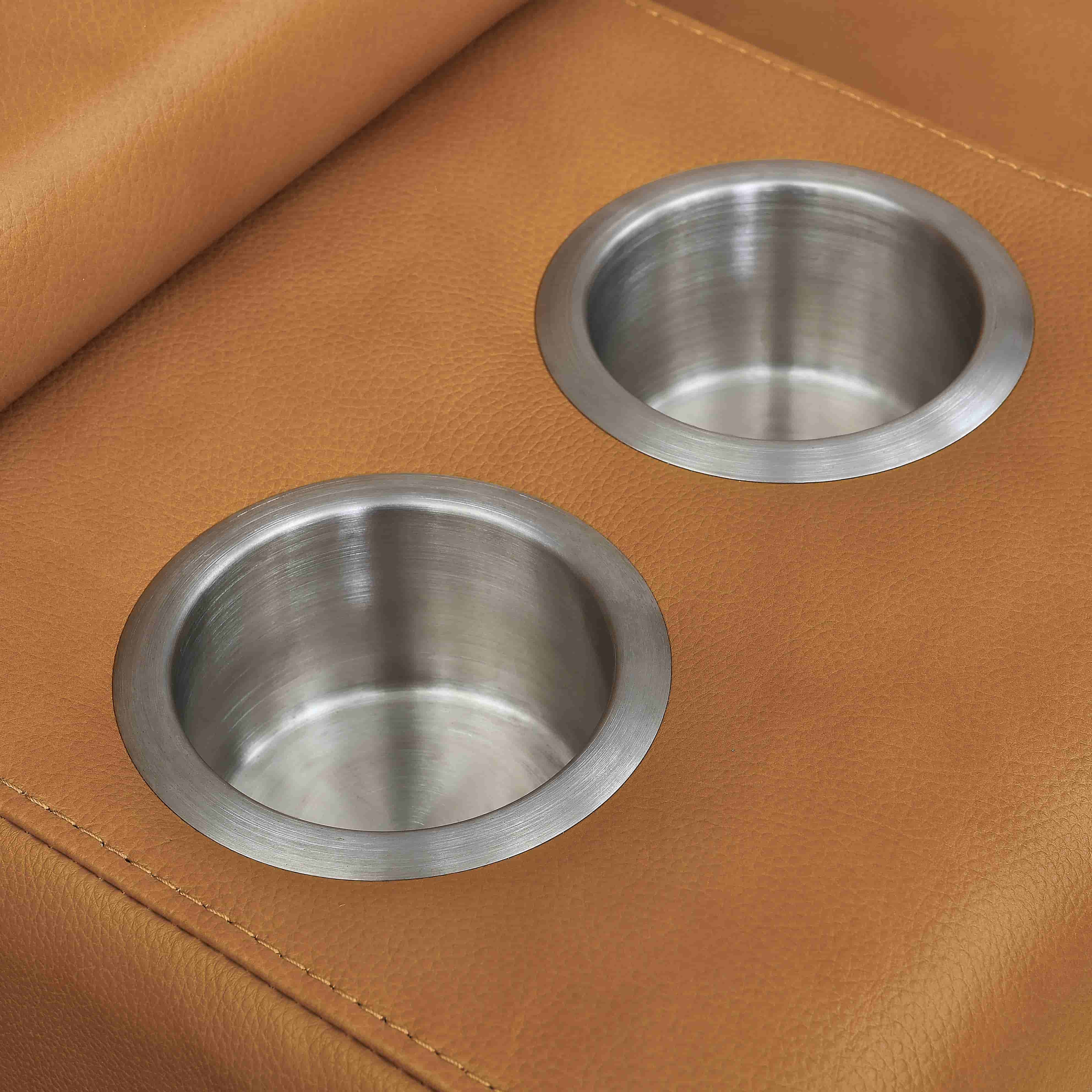 Optioned Storage Console: Deep storage compartment and built-in cupholders for ultimate theater-style convenience.