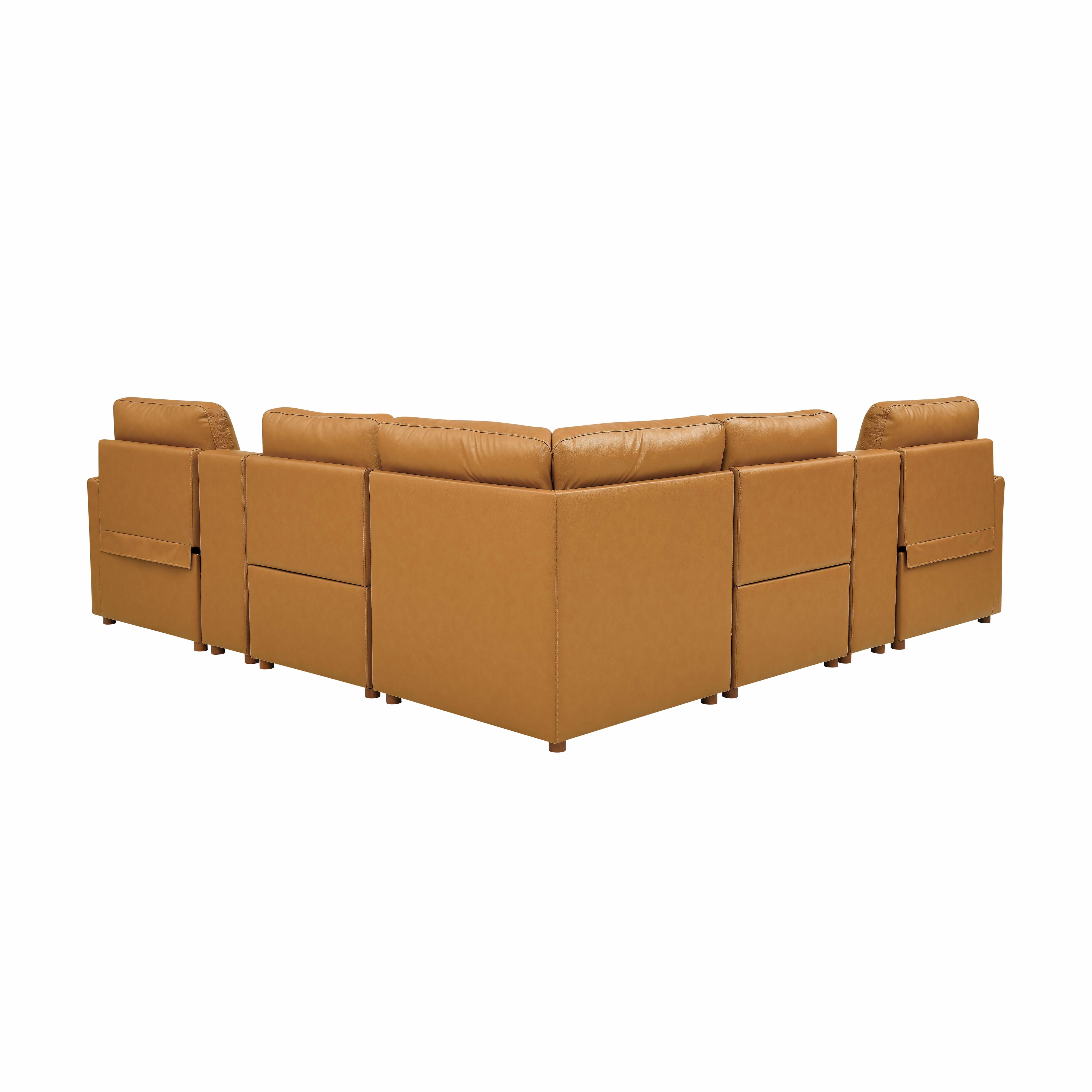1, This commanding 6-piece modular sectional, featuring a deep color tone finish that brings a sense of grounded luxury to any modern or industria...
