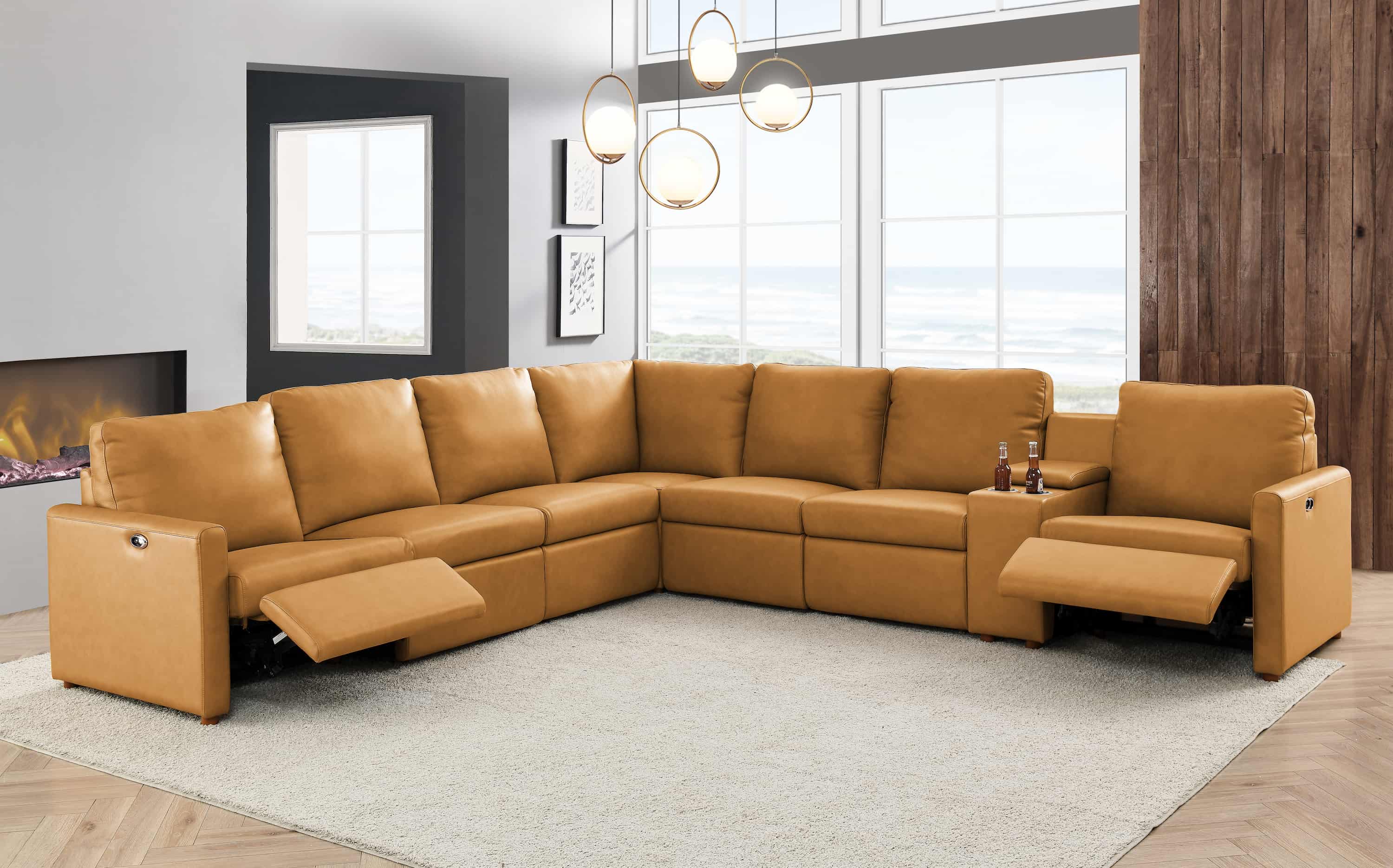 1, The D977X series, a modular masterpiece with comfort technology.    2, Every seating surface is upholstered in premium top-grain leathe...