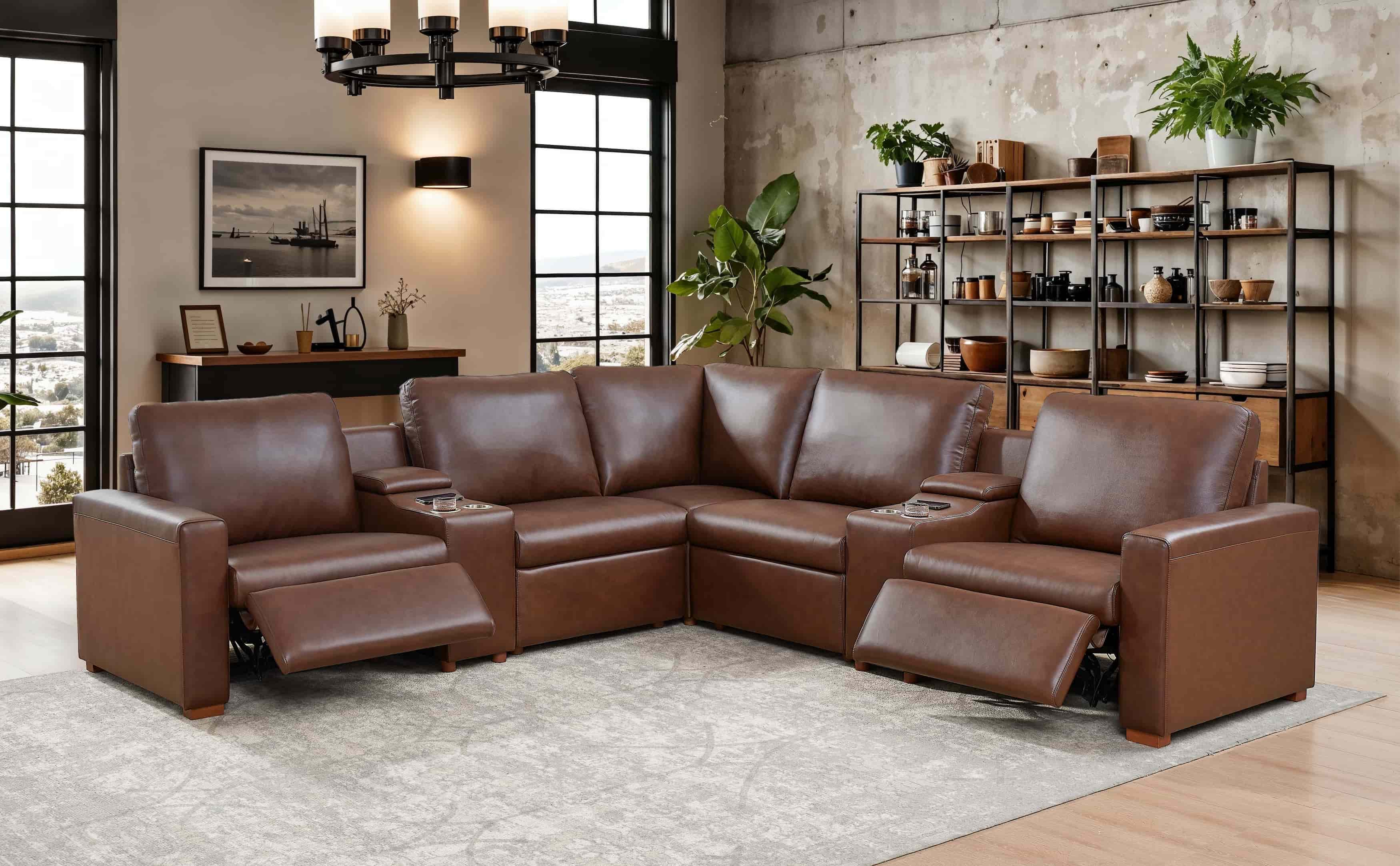 2, Featuring dual power recliners and an integrated command center, this modular suite effortlessly masters the balance between executive style and family utility.