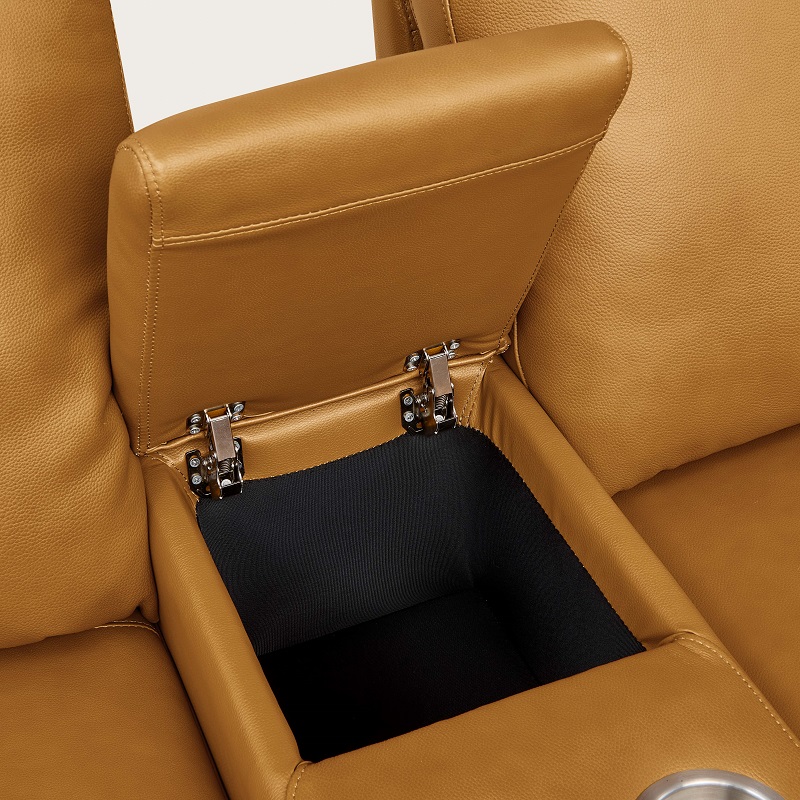 Integrated Command Center: Deep storage compartment and built-in cupholders for theater-style convenience.