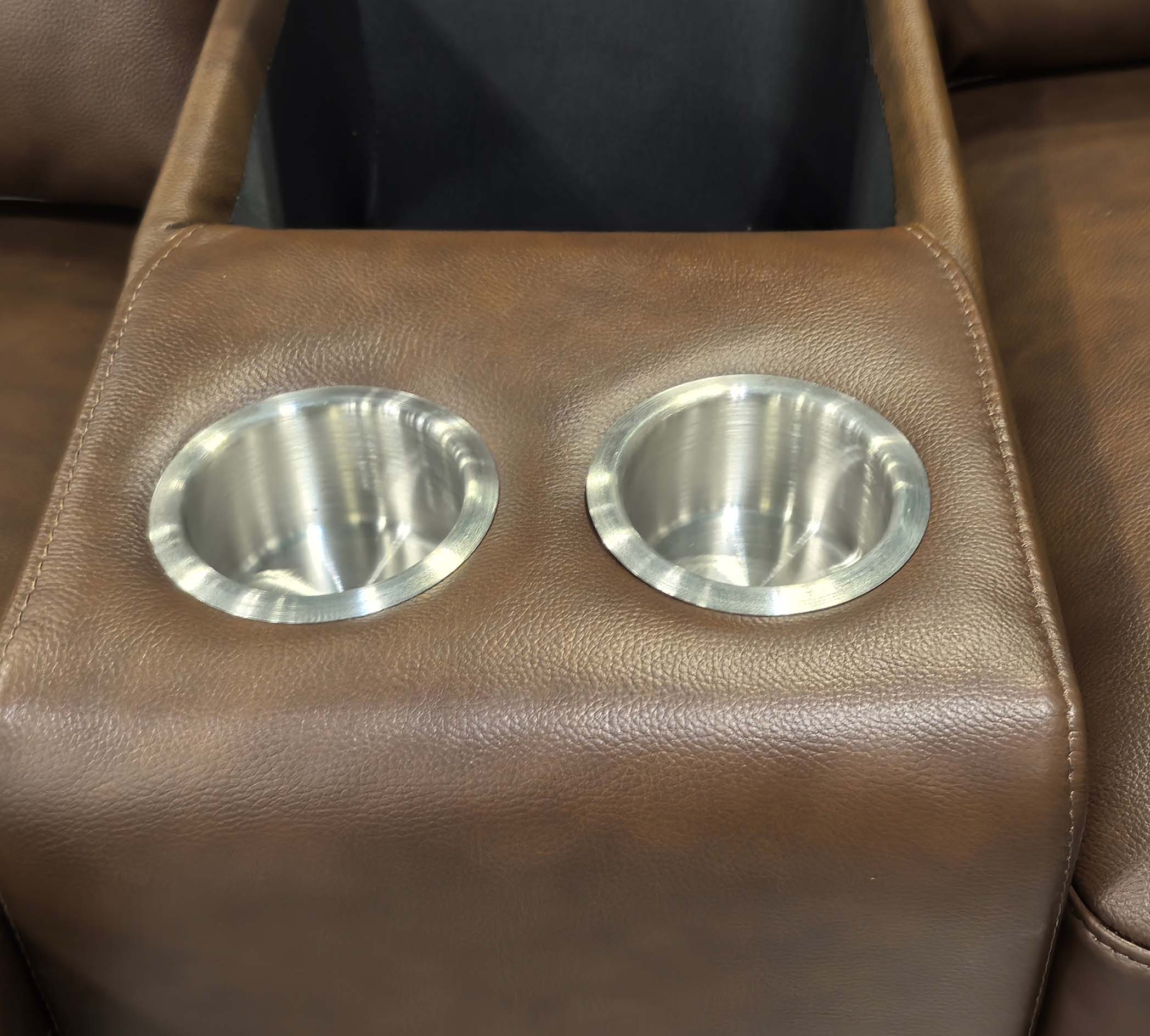 Integrated Command Center: Deep storage compartment and built-in cupholders for theater-style convenience.