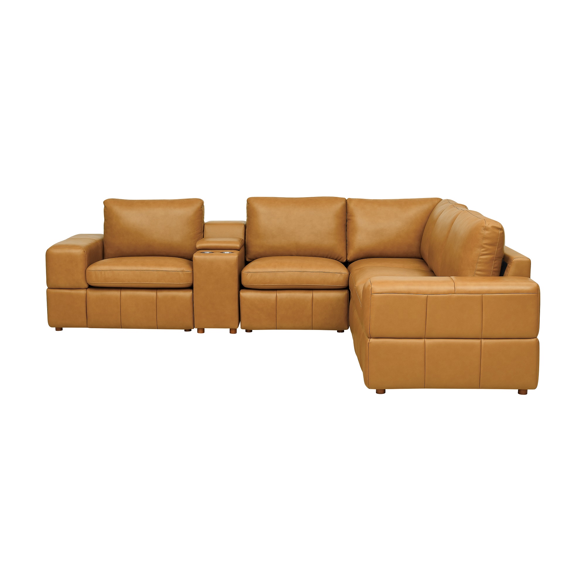 Integrated Storage Console: Deep storage for remotes and essentials, paired with dual cupholders for a cinema-like experience at home.
