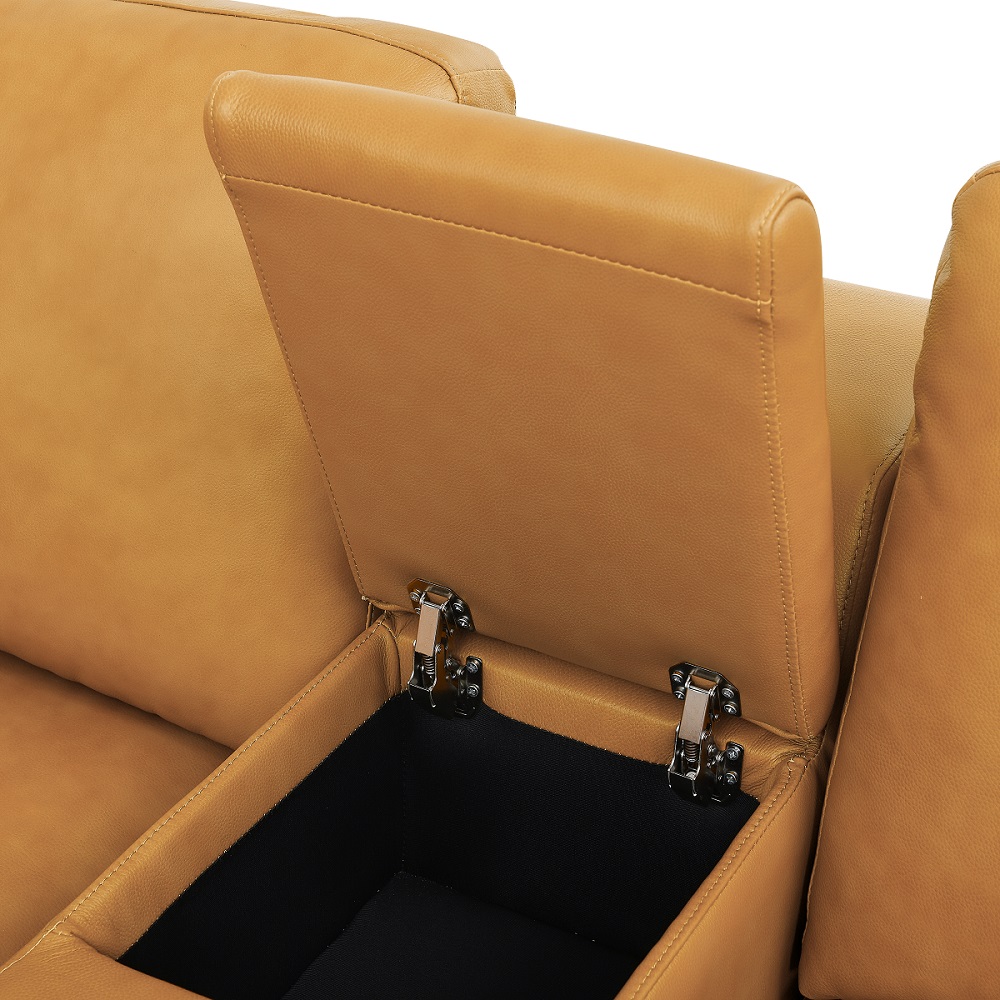Integrated Storage Console: Deep storage for remotes and essentials, paired with dual cupholders for a cinema-like experience at home.