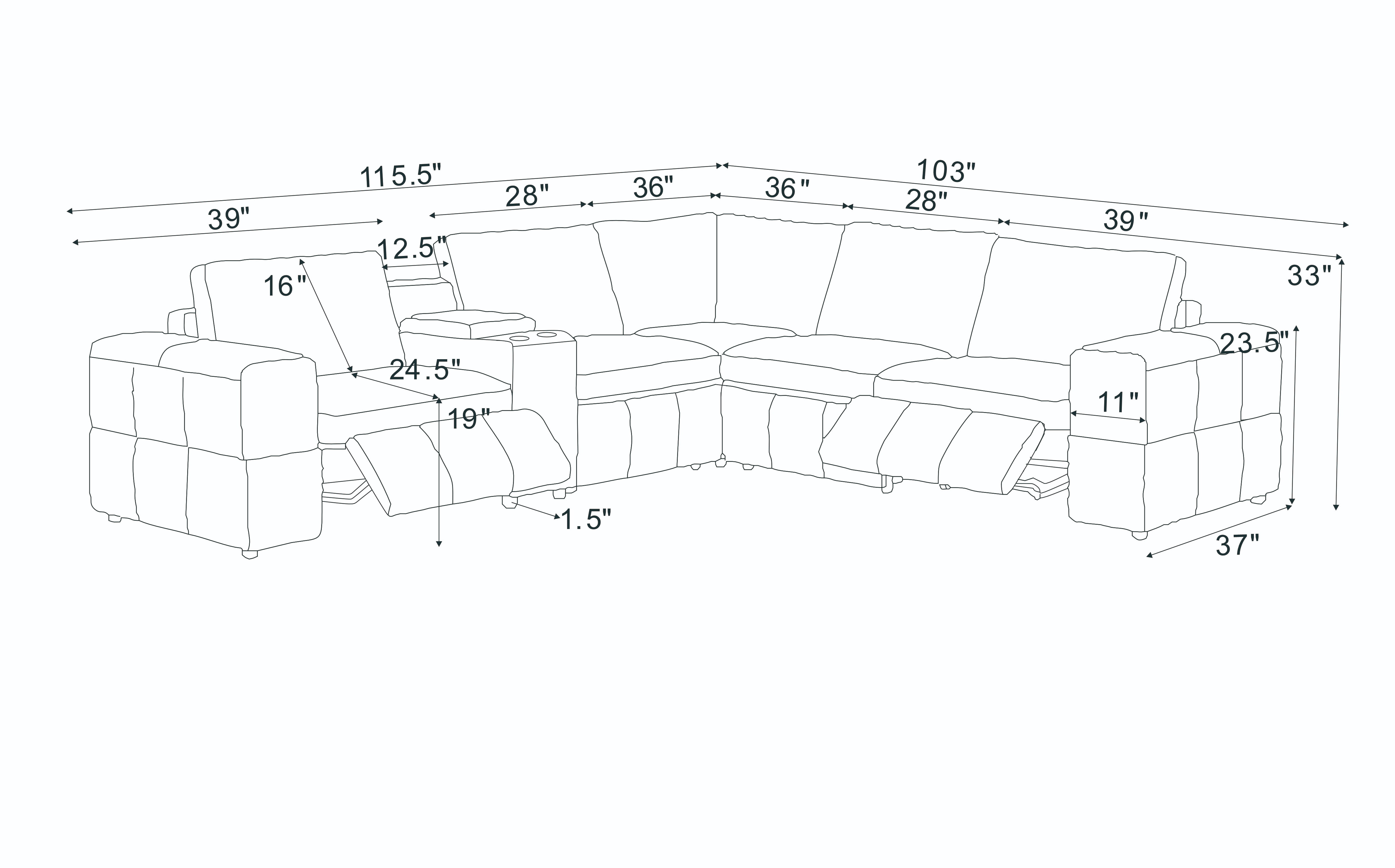 5, Integrated with a multi-functional storage console and dual cupholders, it transforms living room into a sophisticated hub for movie nights and hosting.