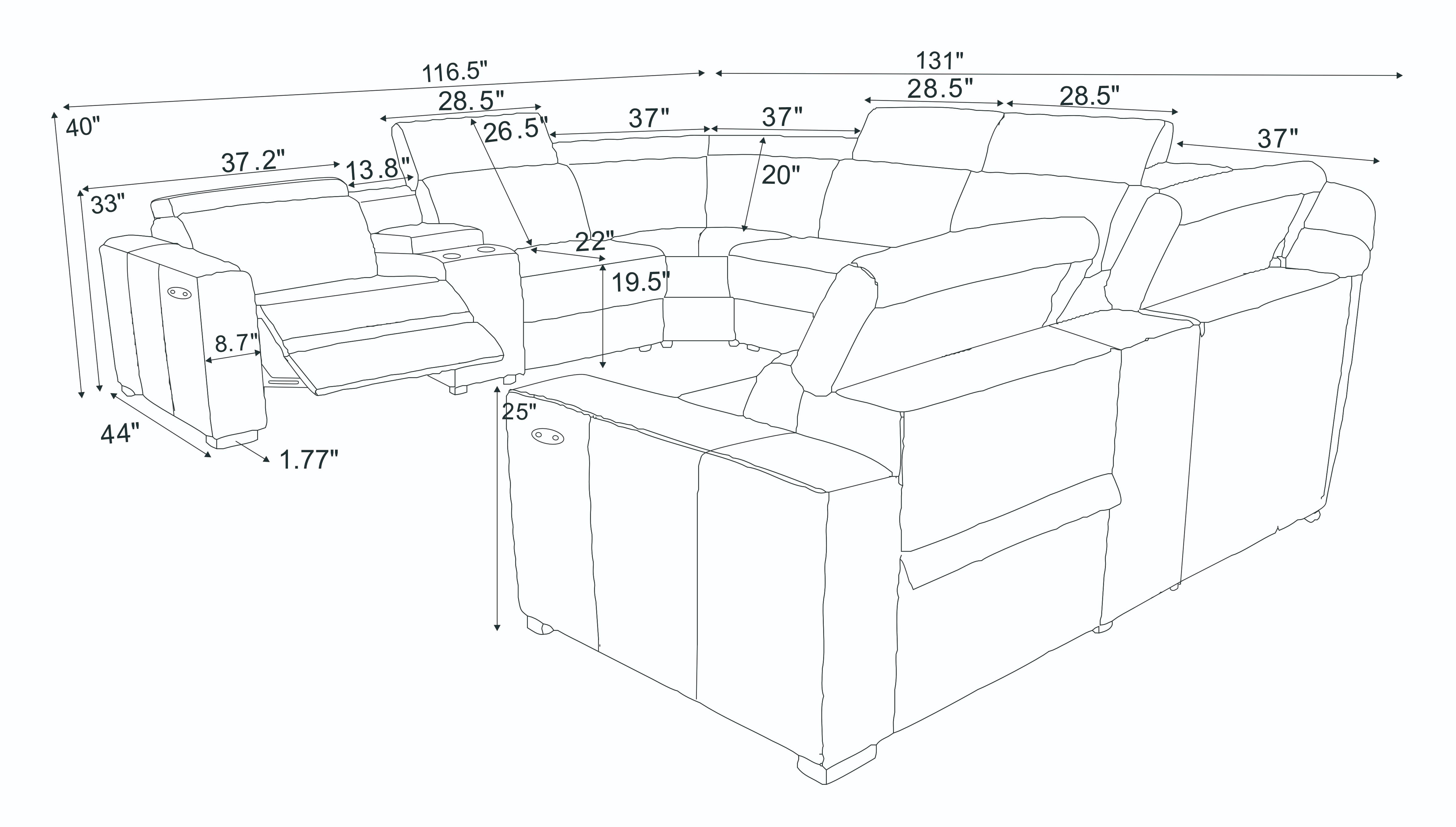 End Power Reclining: Smooth, motorized adjustment on end seats for effortless relaxation at the touch of a button.