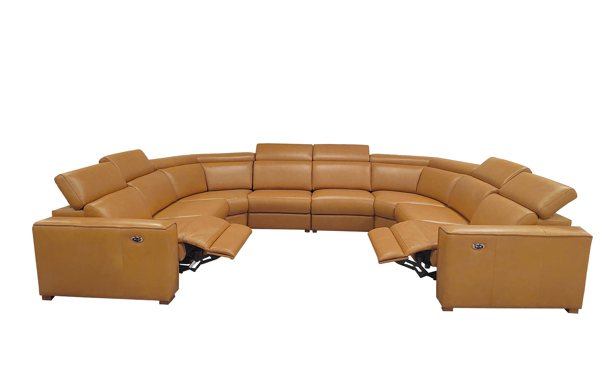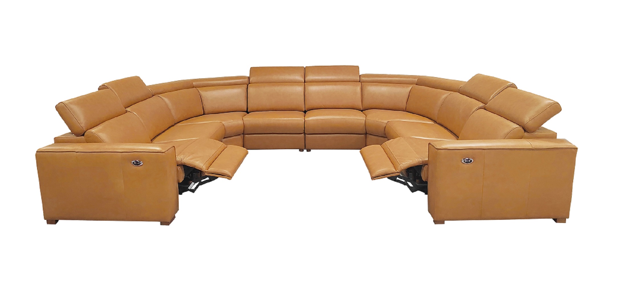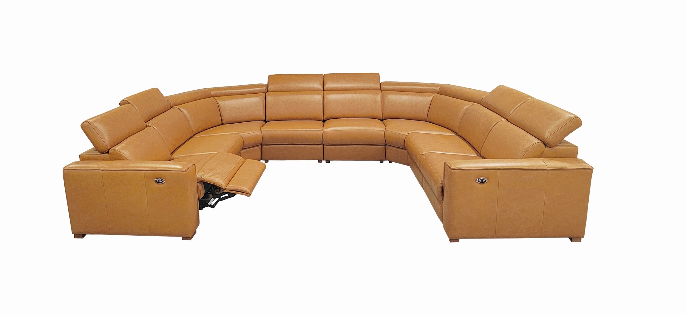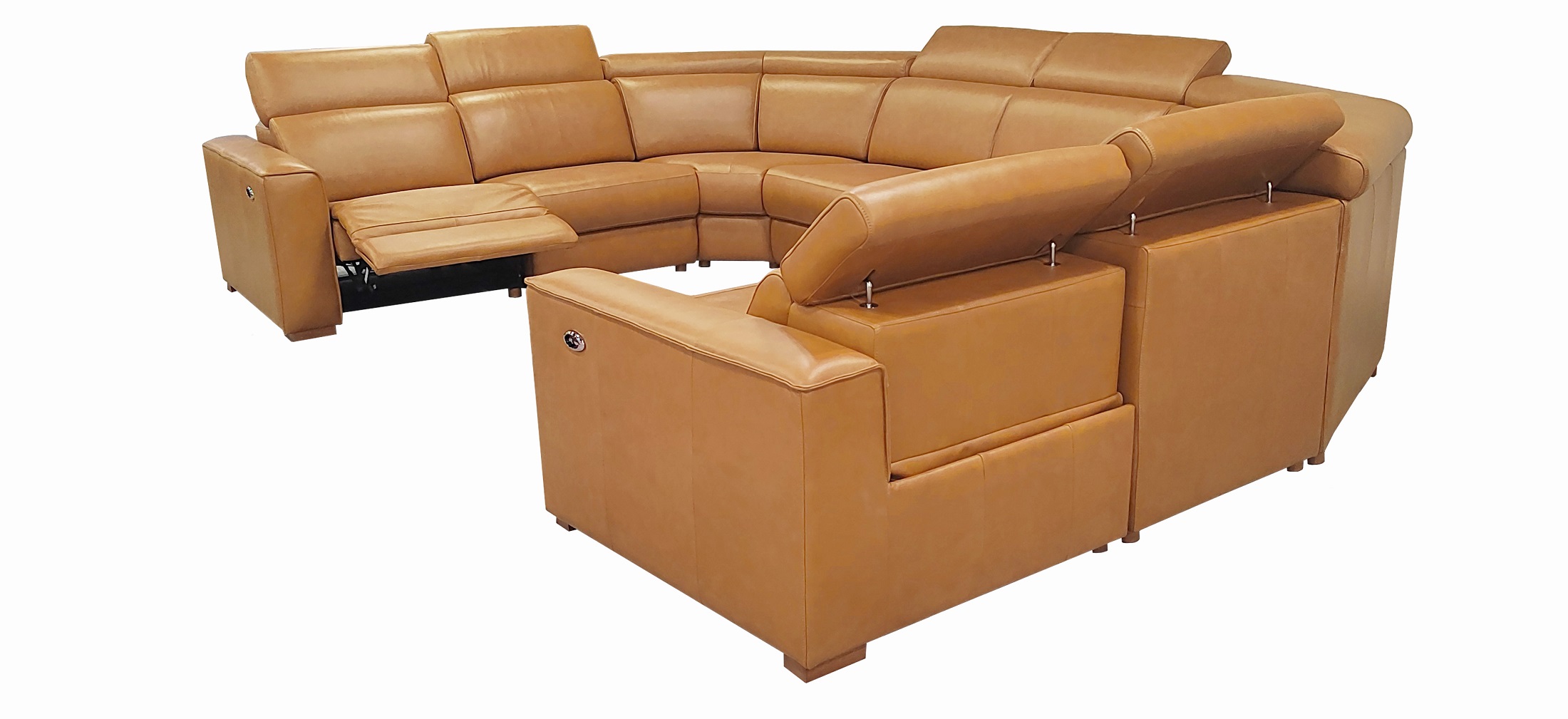4, The end seats feature power reclining mechanisms, while other module is equipped with an adjustable manual headrest for personalized neck support.