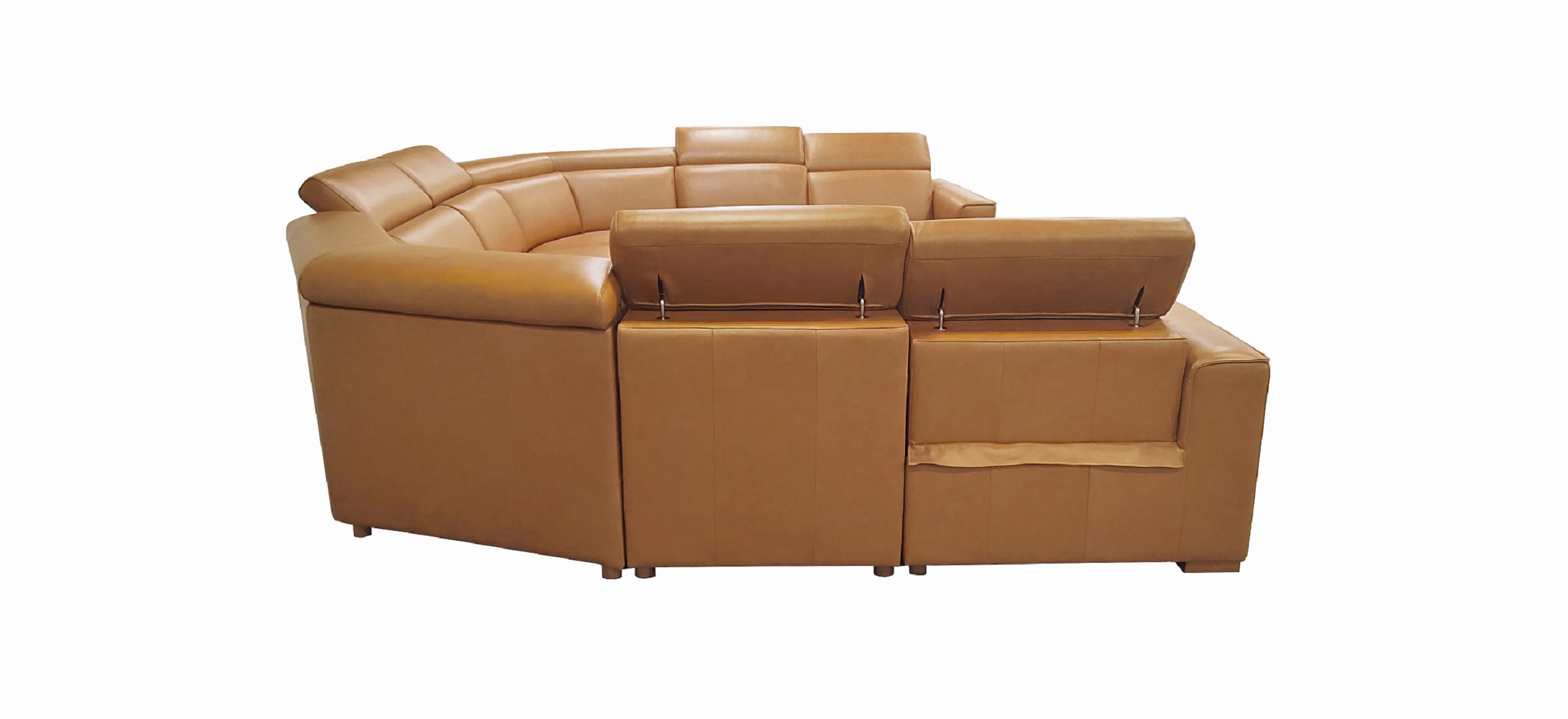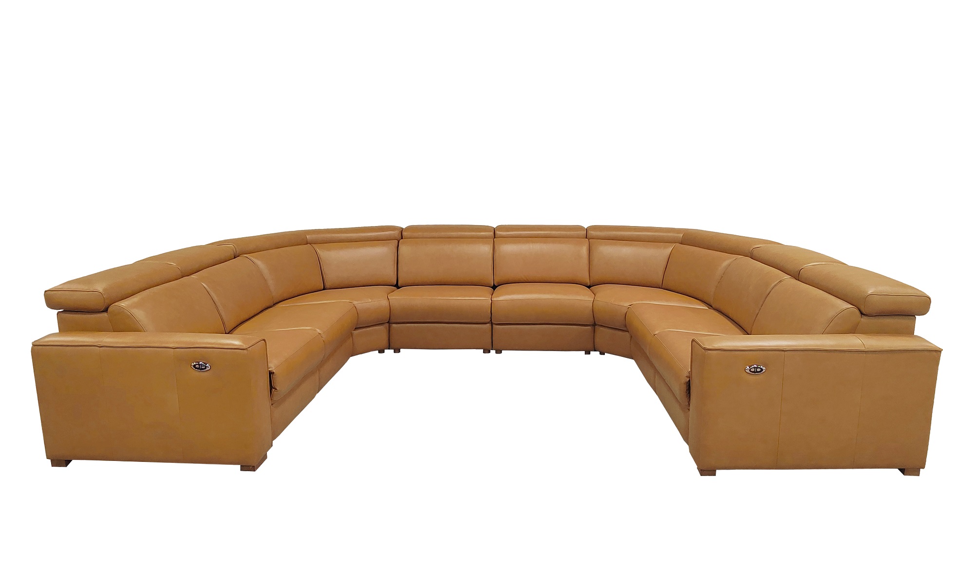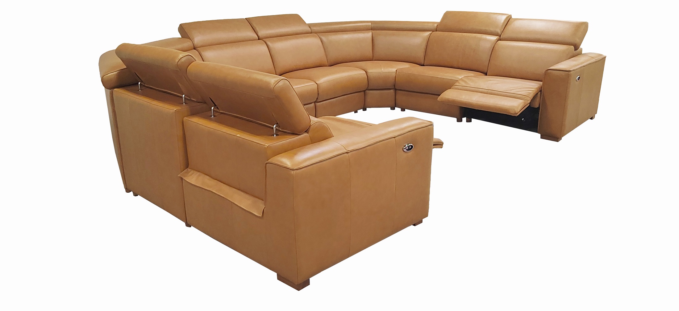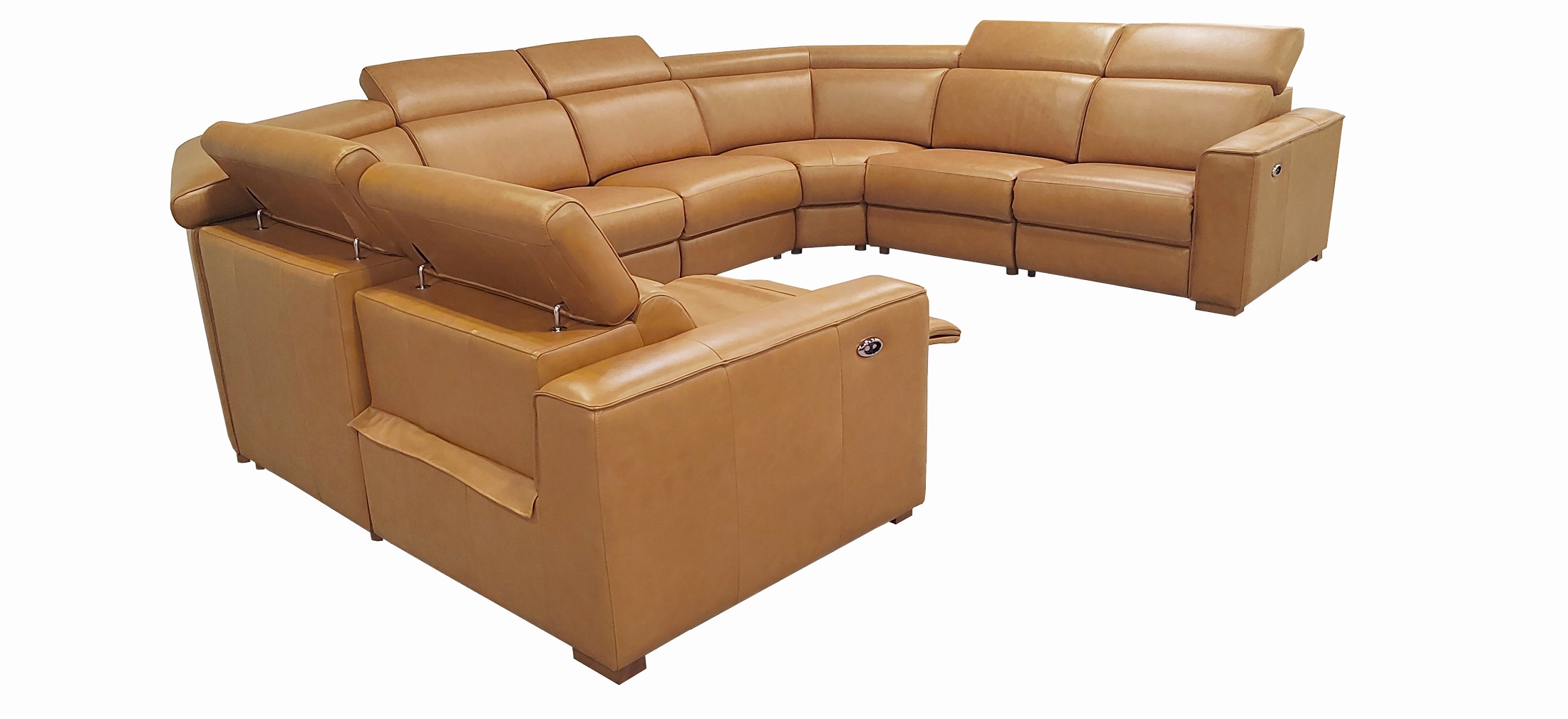 4, The end seats feature power reclining mechanisms, while other module is equipped with an adjustable manual headrest for personalized neck support.