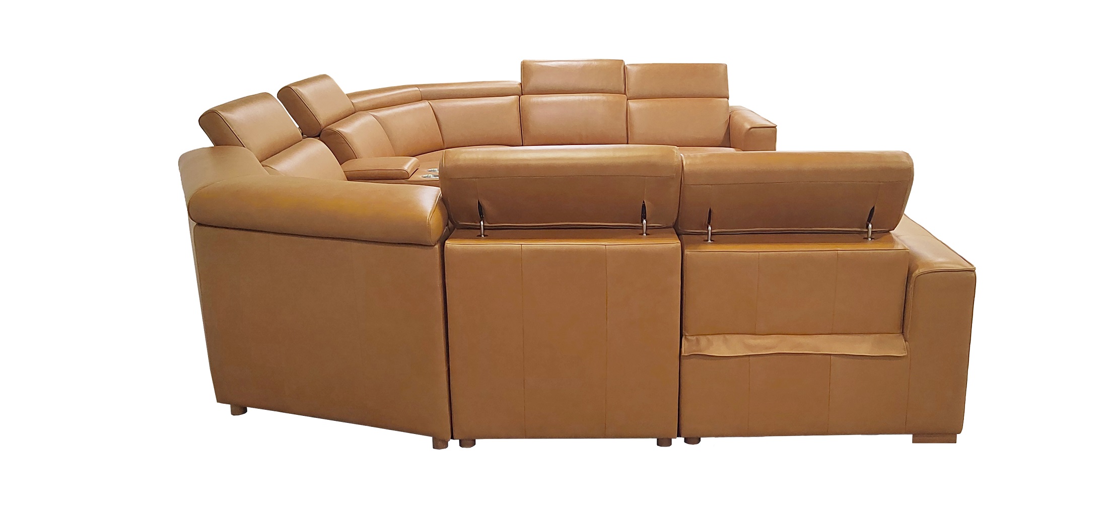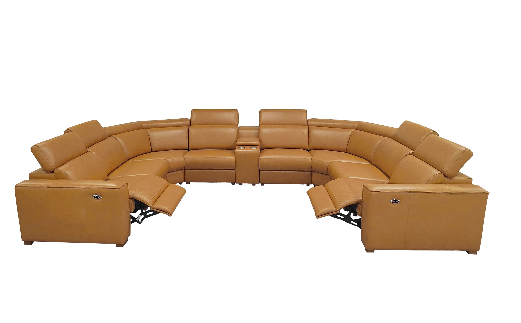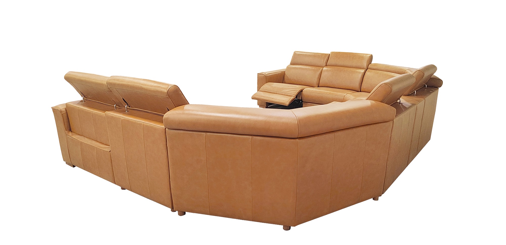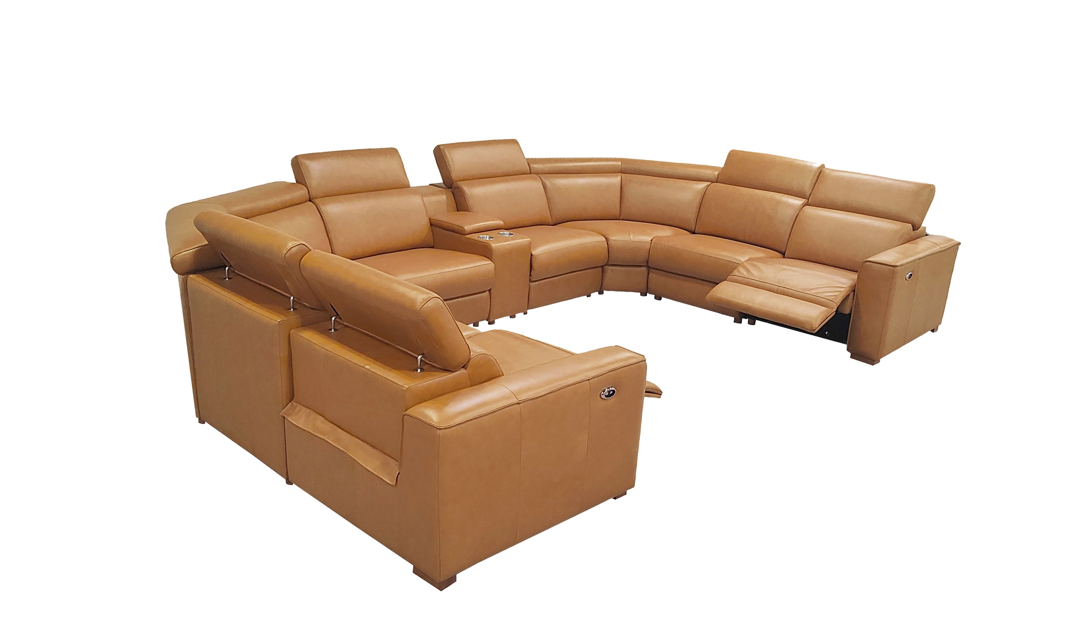 4, The end seats feature power reclining mechanisms, while other module is equipped with an adjustable manual headrest for personalized neck support.