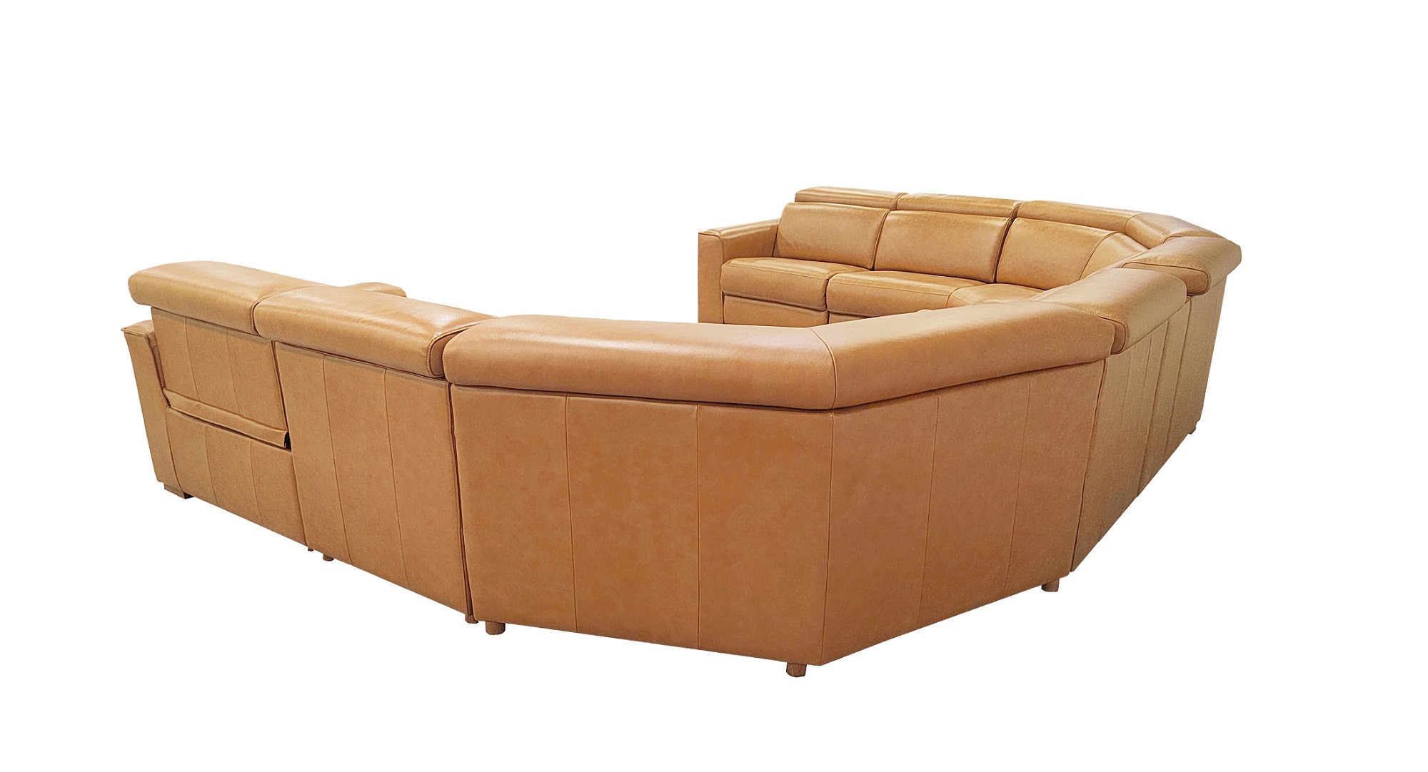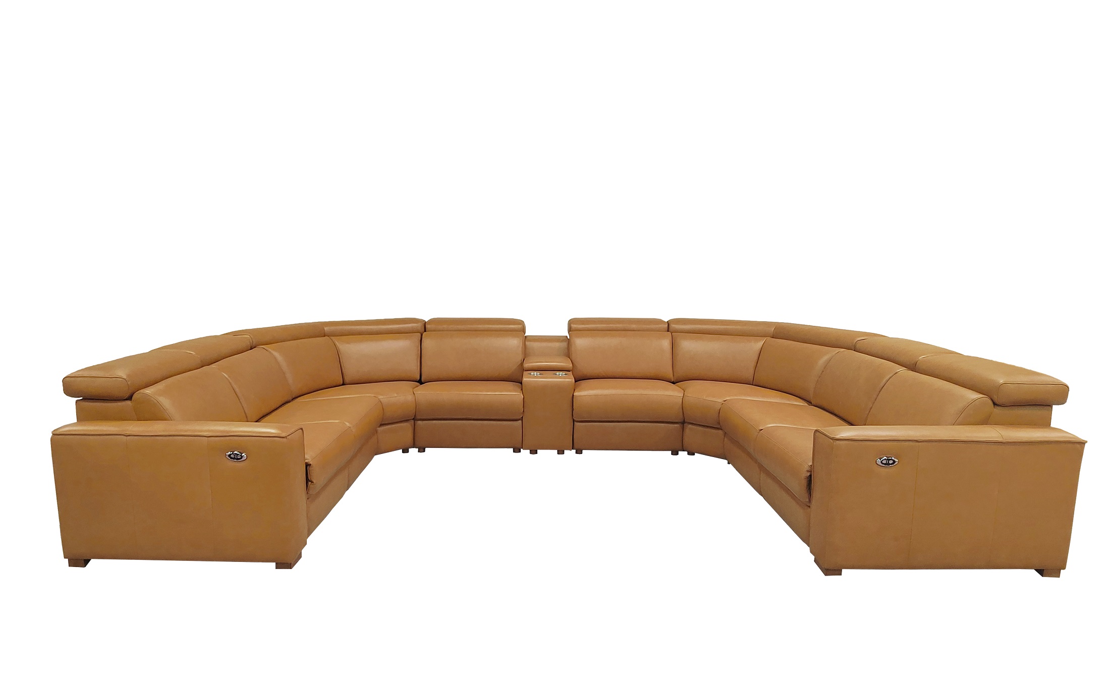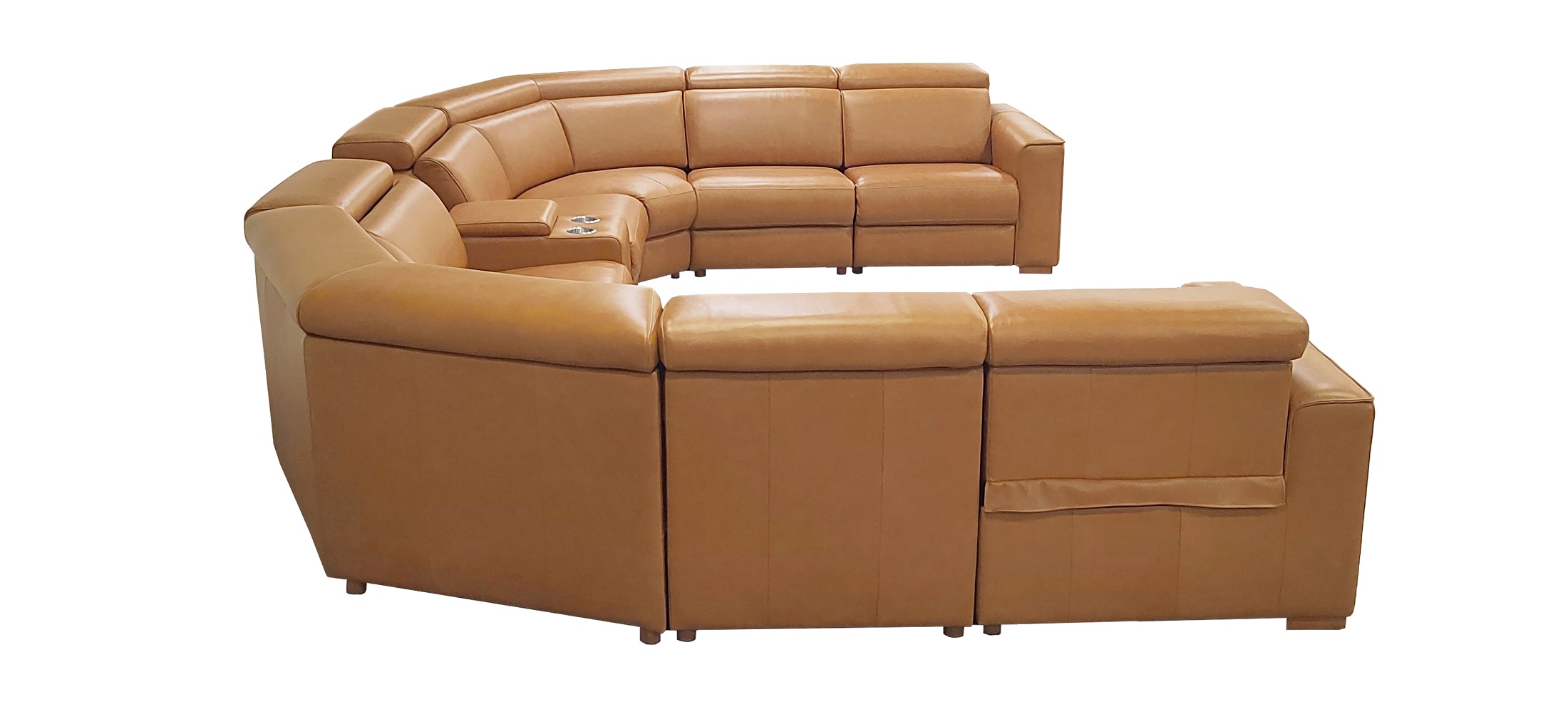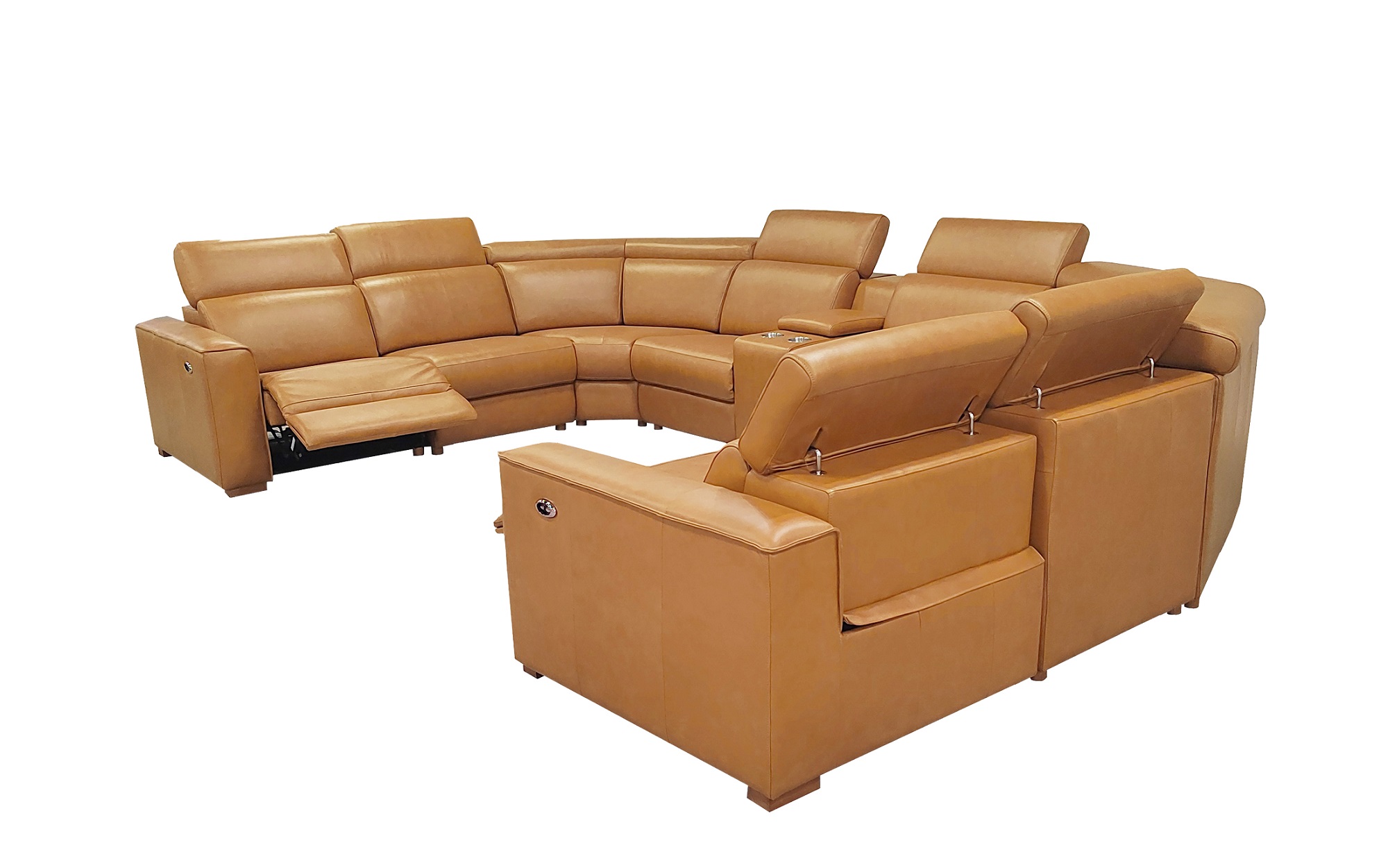 4, The end seats feature power reclining mechanisms, while other module is equipped with an adjustable manual headrest for personalized neck support.
