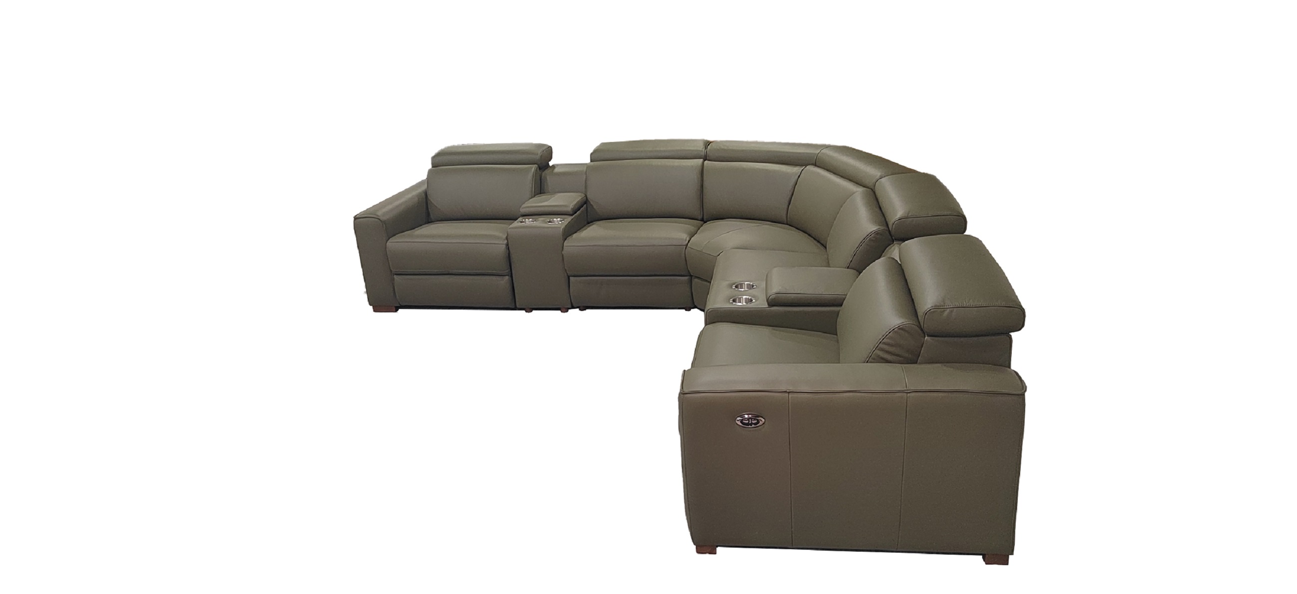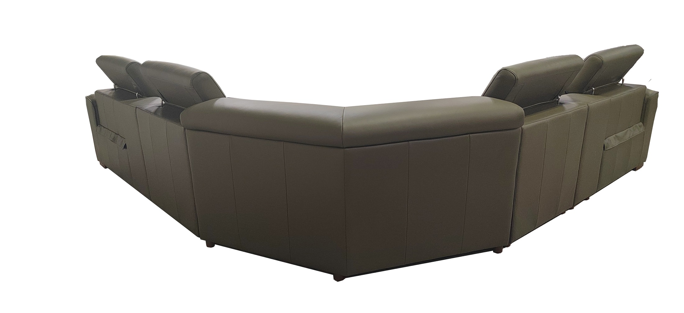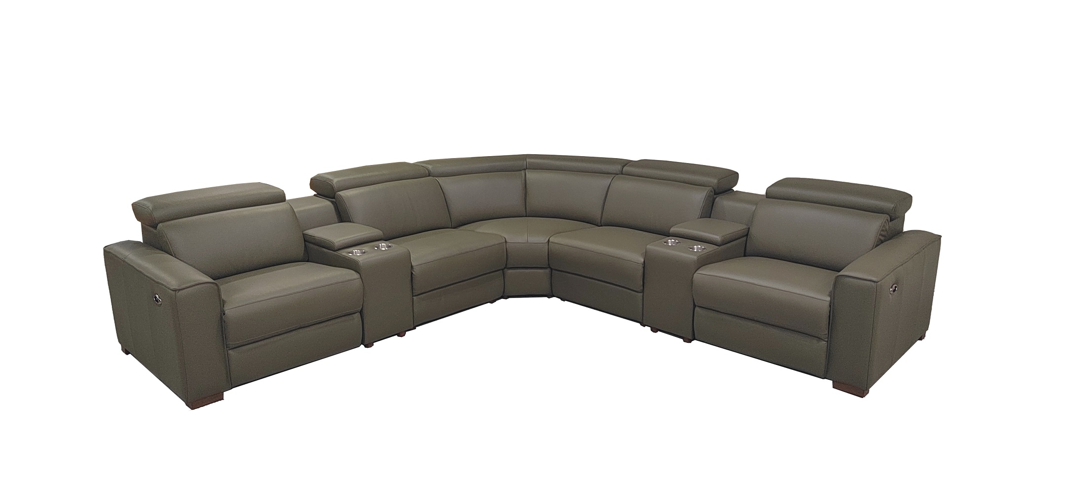 4, The end seats feature power reclining mechanisms, while other module is equipped with an adjustable manual headrest for personalized neck support.