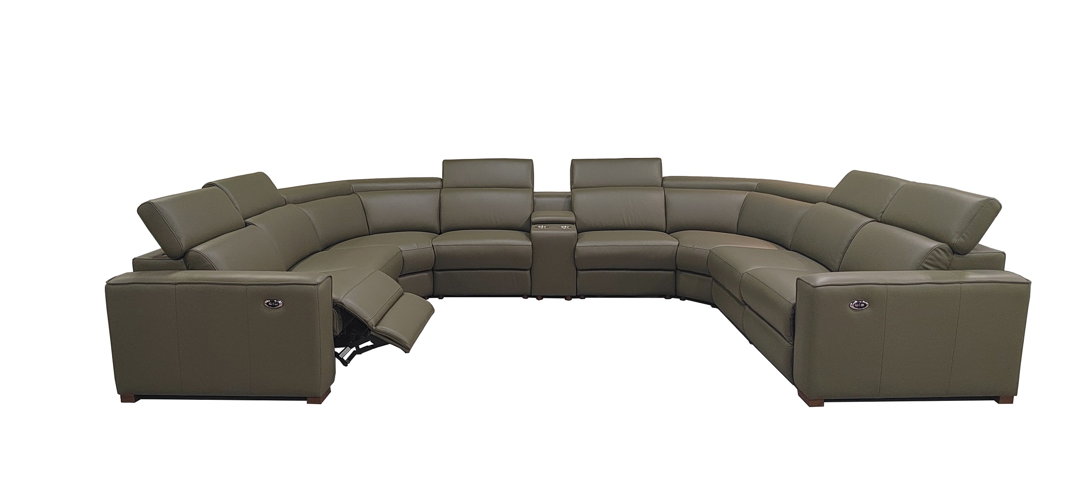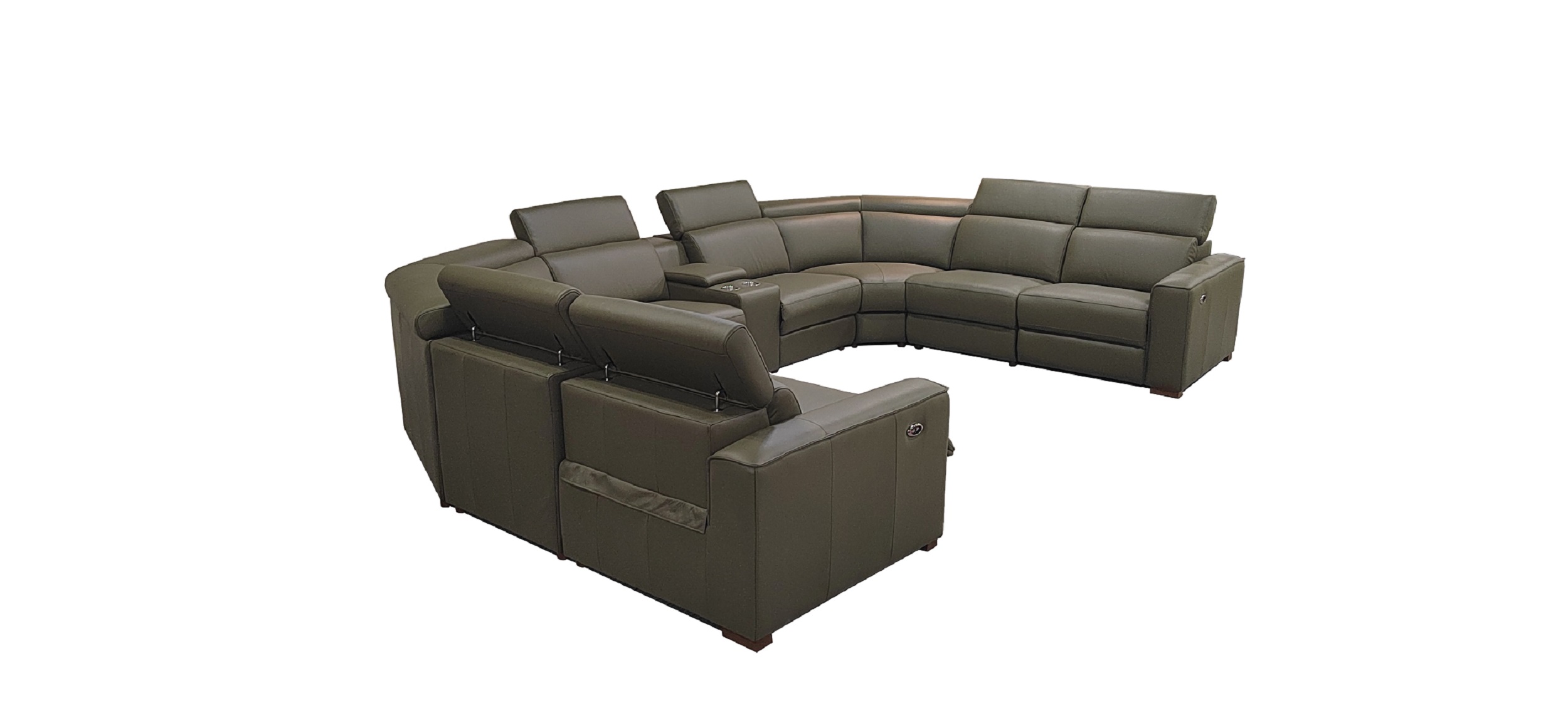 4, The end seats feature power reclining mechanisms, while other module is equipped with an adjustable manual headrest for personalized neck support.