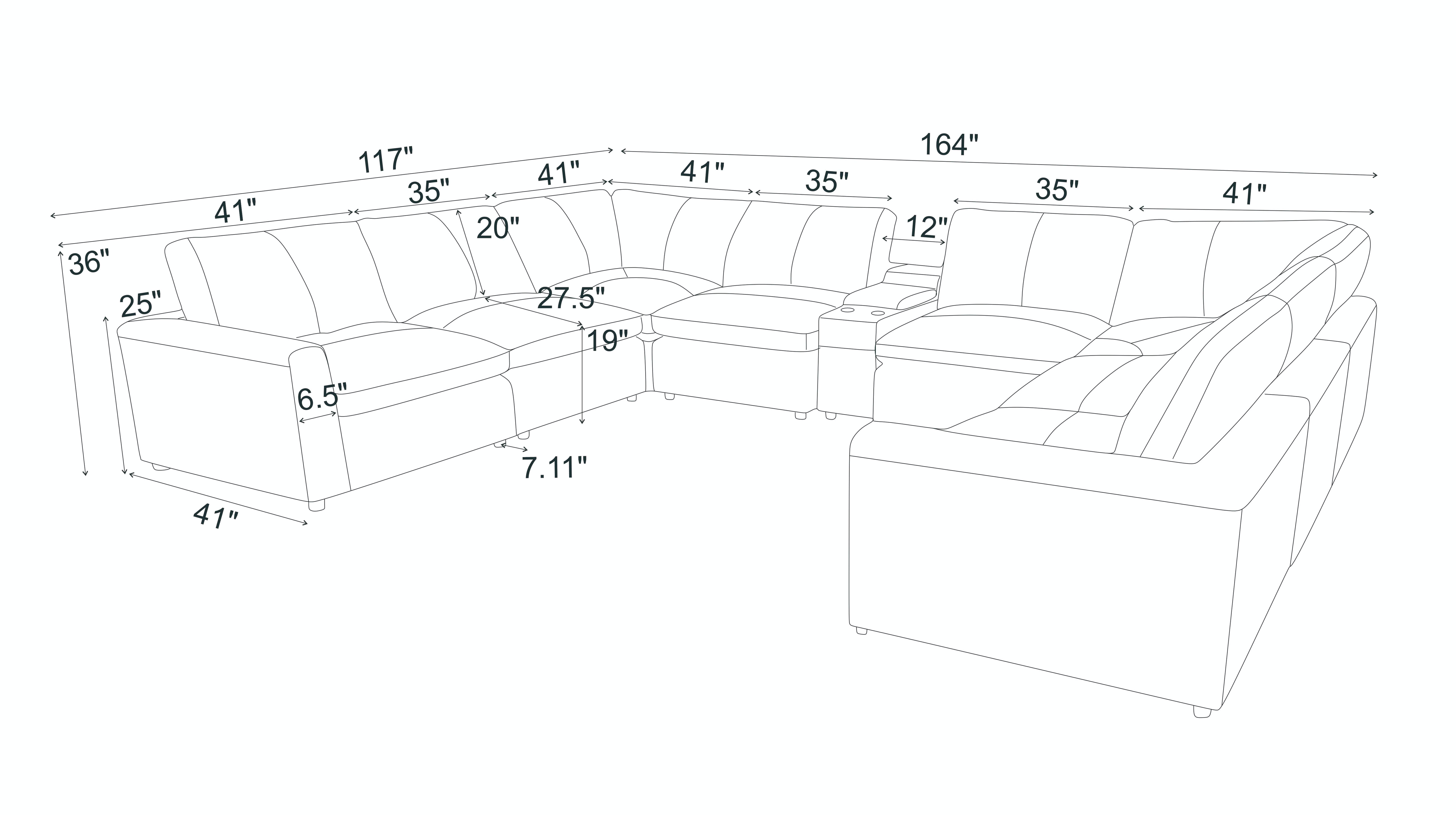 Integrated Storage Console: Deep storage for remotes and essentials, paired with dual cupholders for a cinema-like experience at home.