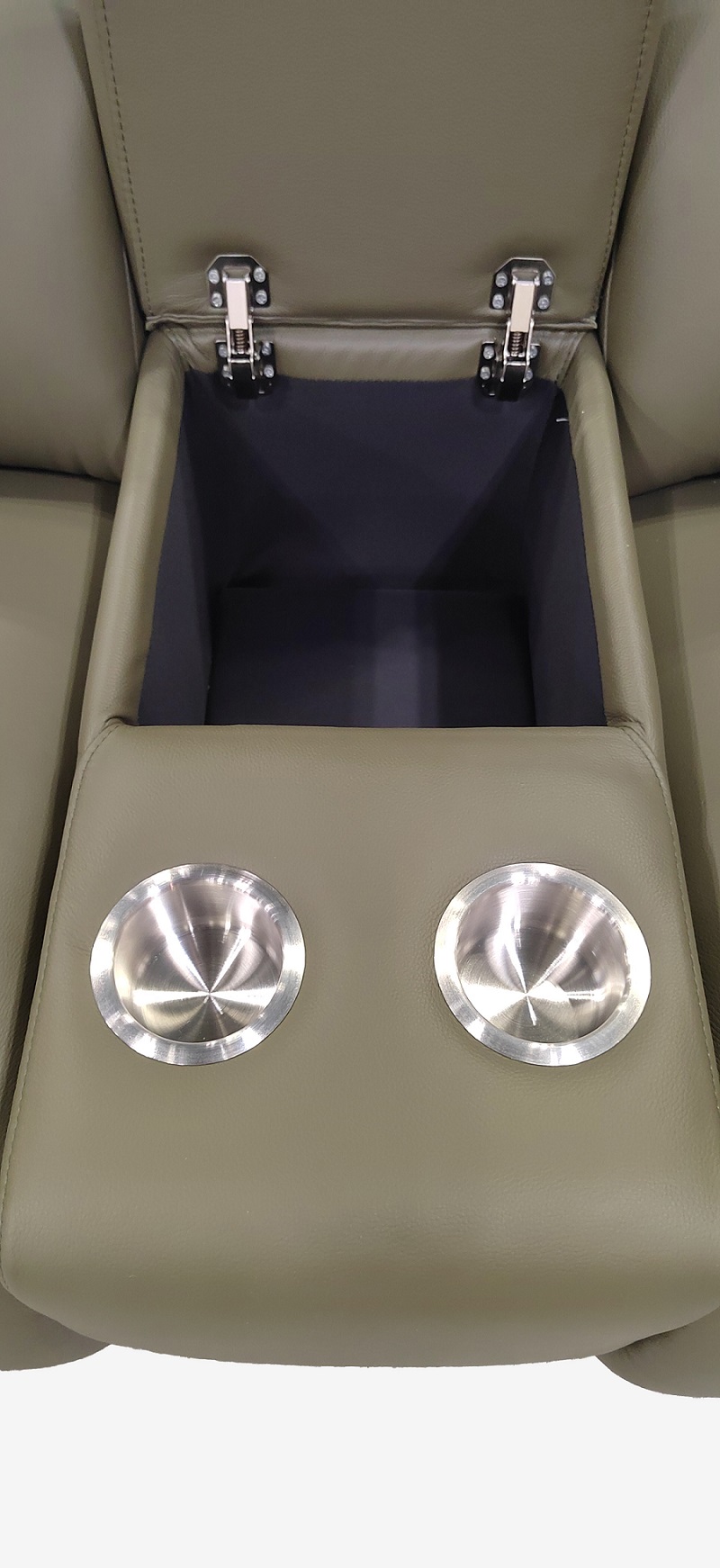 Integrated Storage Console: Features deep storage for remotes and dual cupholders for a cinema-like experience at home.
