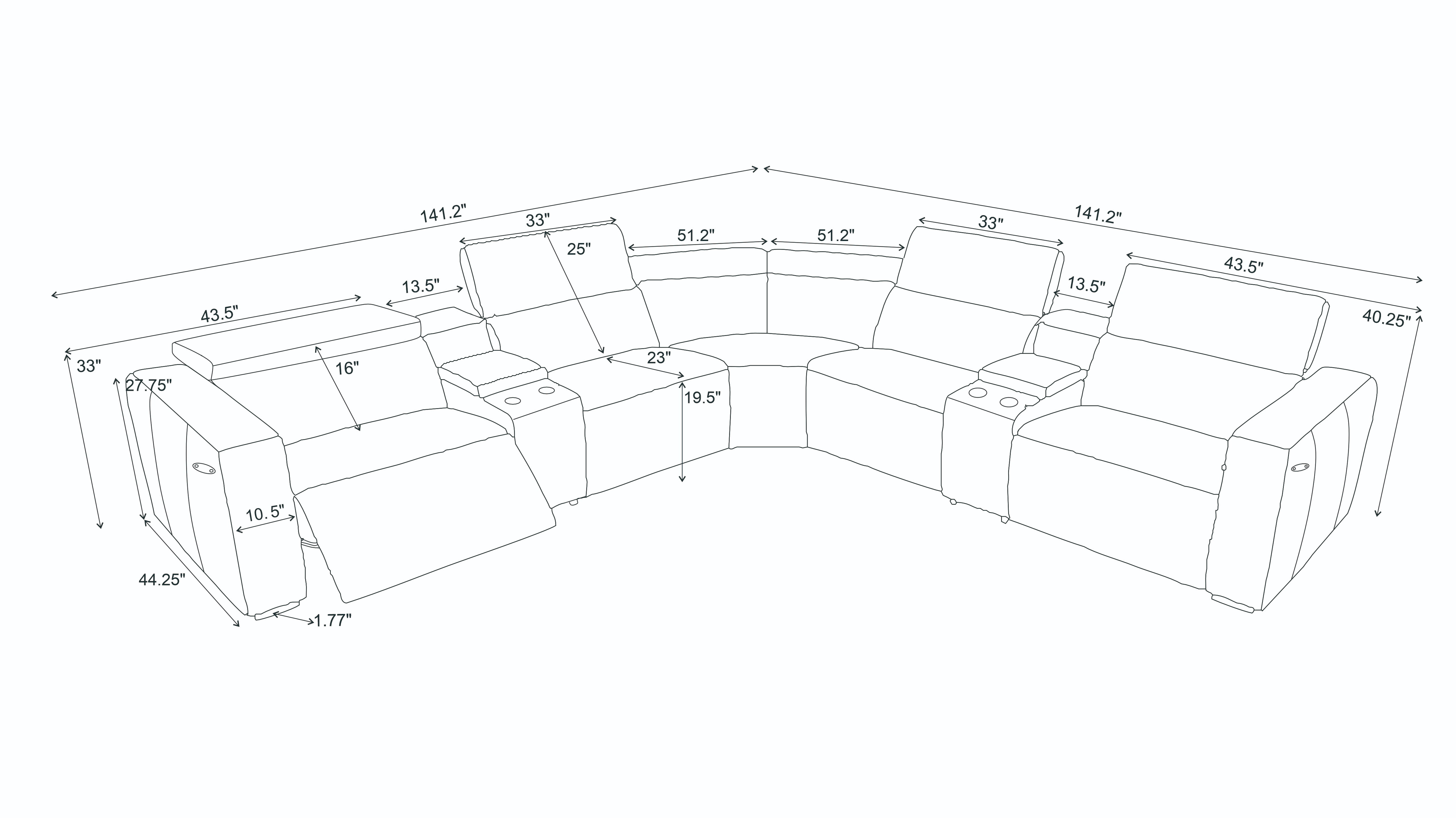 Dual Power Reclining: Smooth, motorized adjustment on end seats for effortless relaxation at the touch of a button.